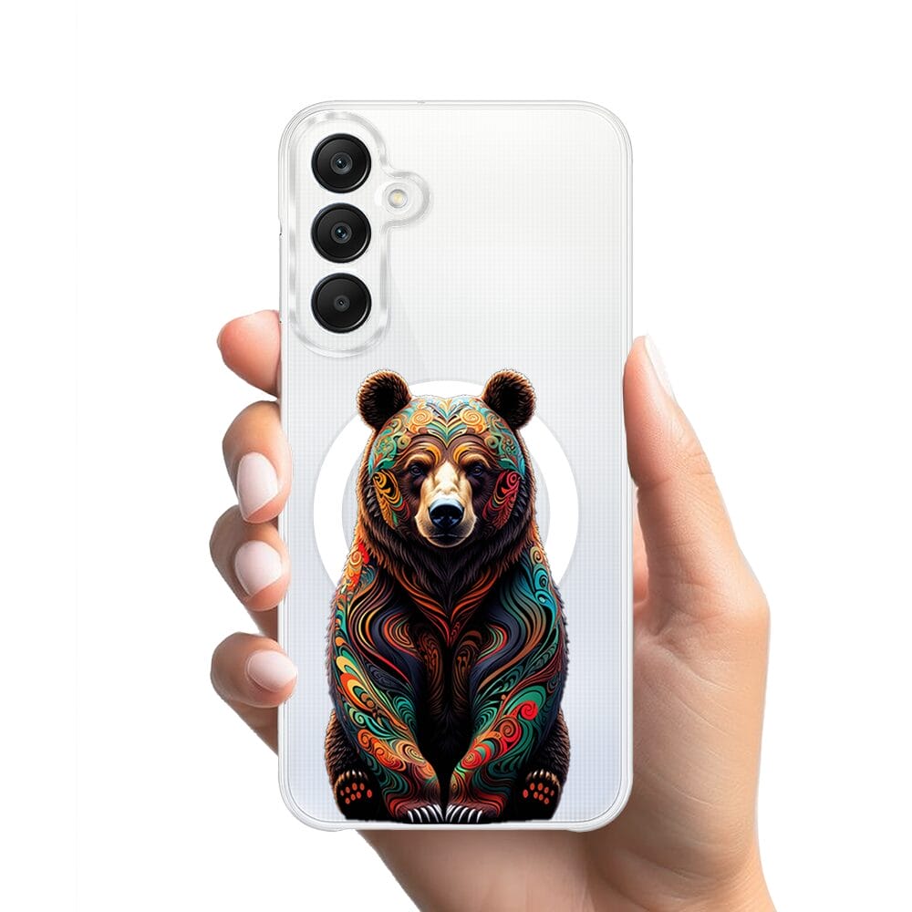 Etui do Samsung Galaxy A25 5G z MagSafe przeźroczyste, silikonowe Flexi, Dzika Mandala, Niedźwiedź