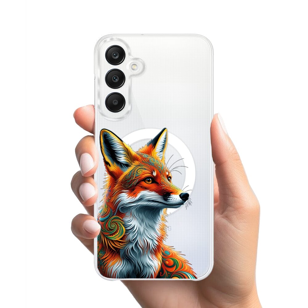 Etui do Samsung Galaxy A25 5G z MagSafe przeźroczyste, silikonowe Flexi, Dzika Mandala, Twarz lisa
