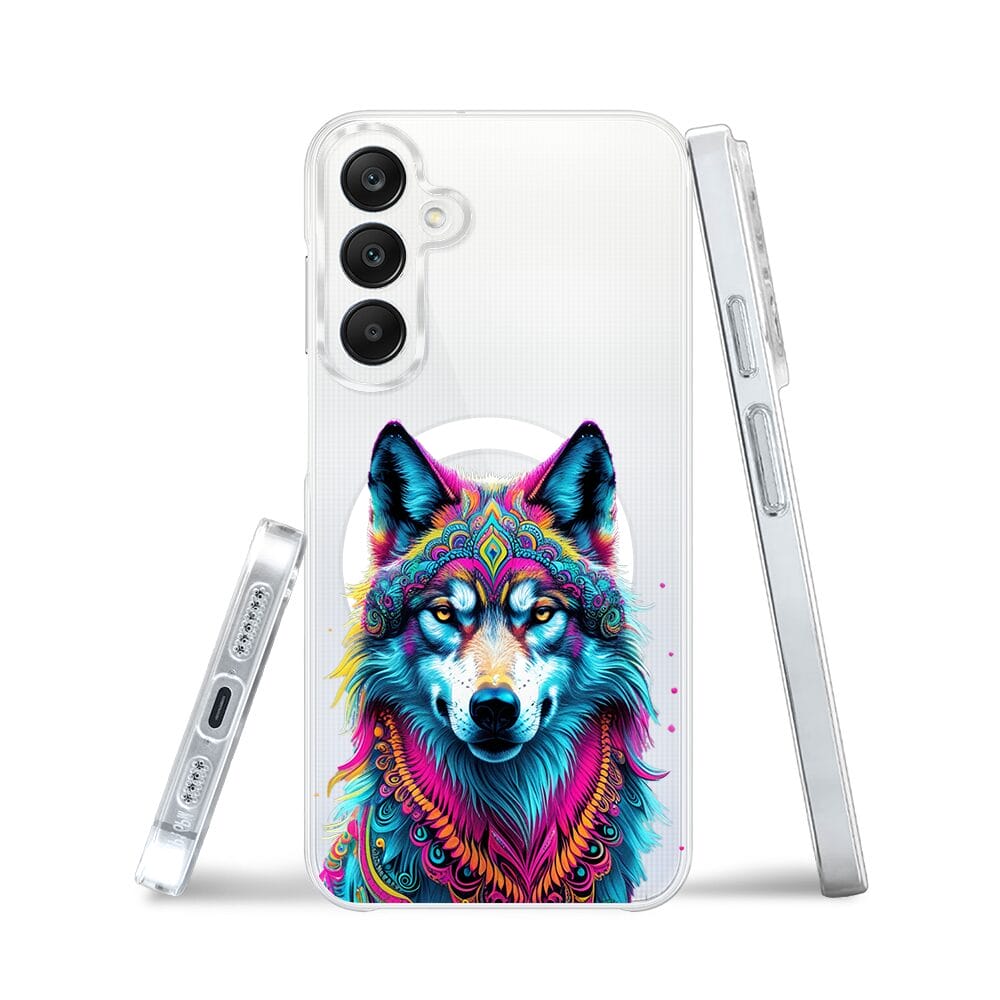 Etui do Samsung Galaxy A25 5G z MagSafe przeźroczyste, silikonowe Flexi, Dzika Mandala, Wilk