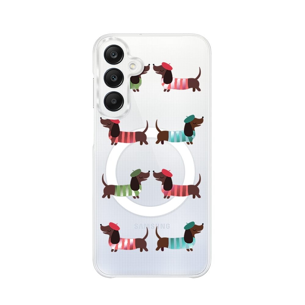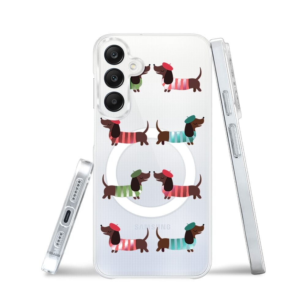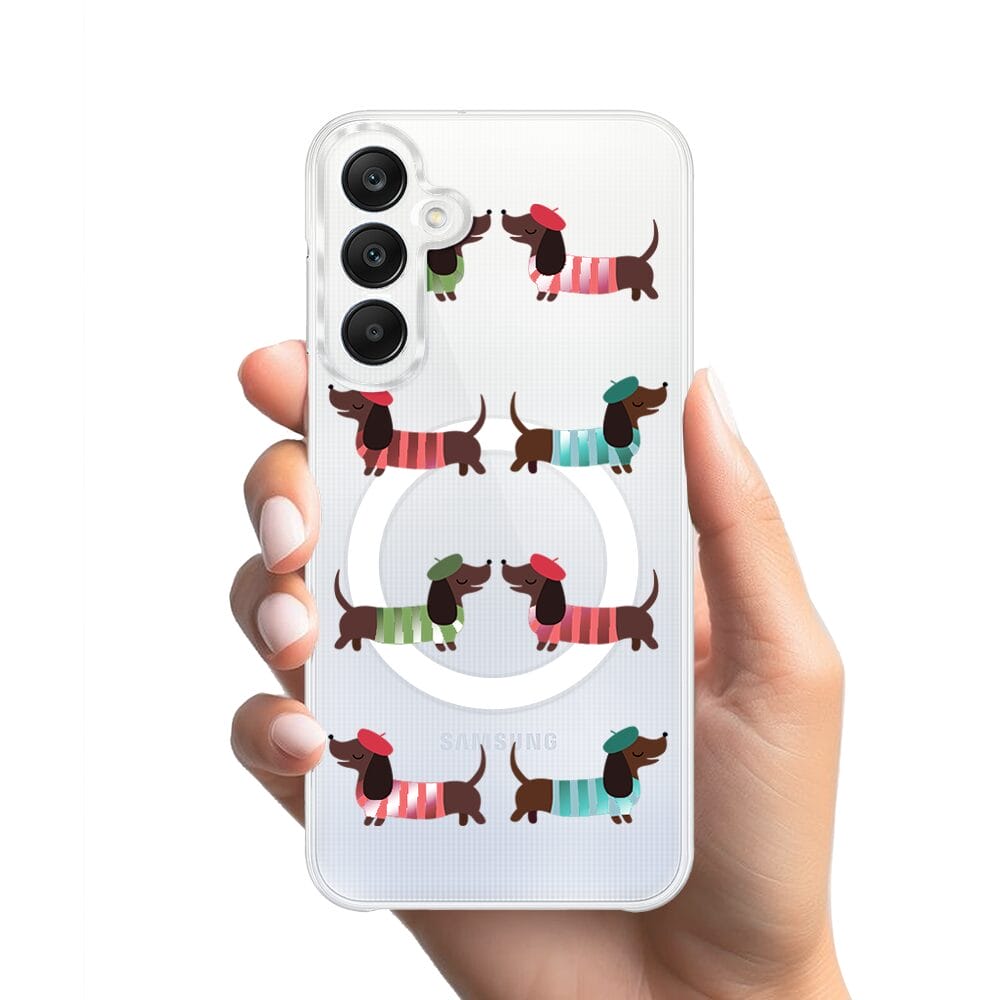 Etui do Samsung Galaxy A25 5G z MagSafe przeźroczyste, silikonowe Flexi, jamnik w Paryżu