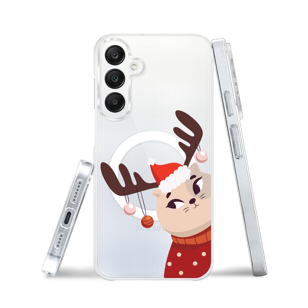 Etui do Samsung Galaxy A25 5G z MagSafe przeźroczyste, silikonowe Flexi, Kotek przebrany za reniferka