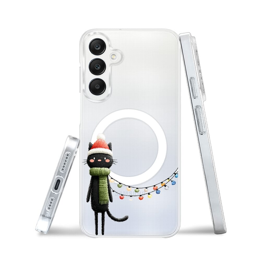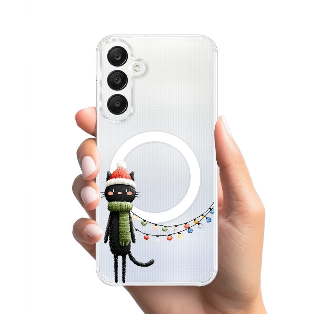 Etui do Samsung Galaxy A25 5G z MagSafe przeźroczyste, silikonowe Flexi, Przytulne święta, Kot przebrany za elfa
