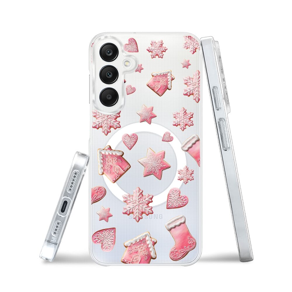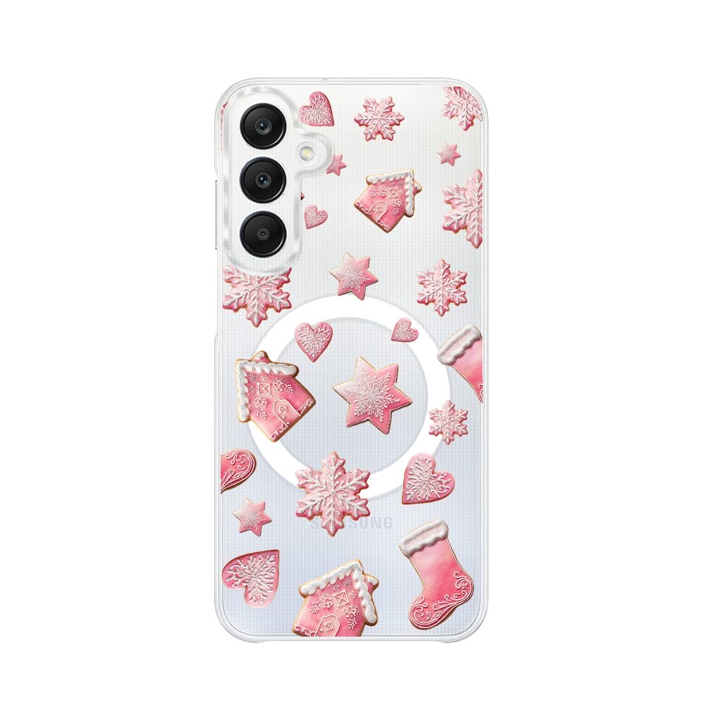 Etui do Samsung Galaxy A25 5G z MagSafe przeźroczyste, silikonowe Flexi, Przytulne święta, Różowe pierniczki