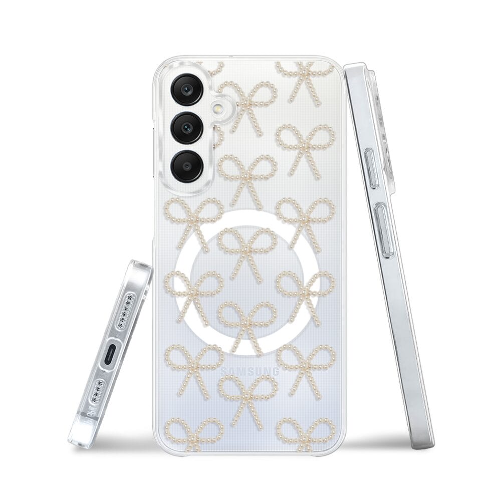 Etui do Samsung Galaxy A25 5G z MagSafe przeźroczyste, silikonowe Flexi, Przytulne święta, złote kokardki