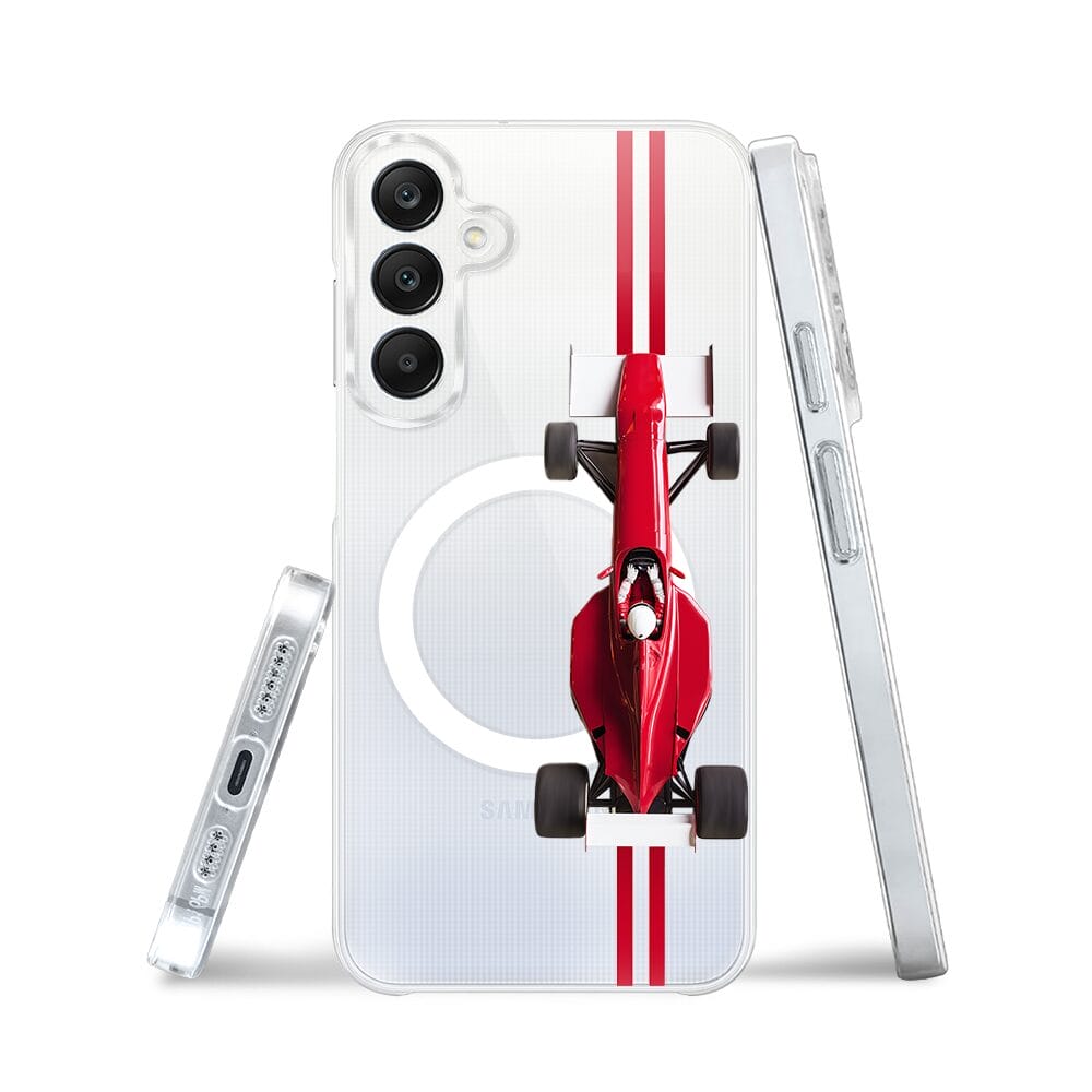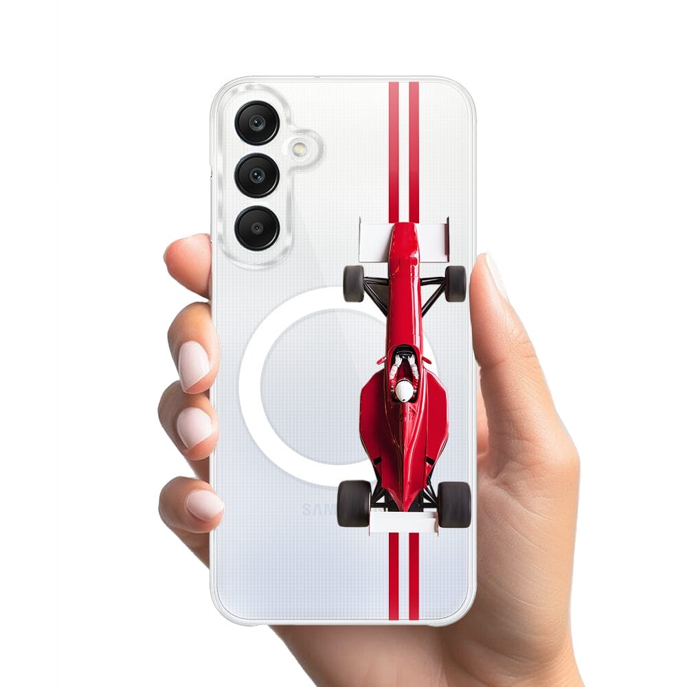 Etui do Samsung Galaxy A25 5G z MagSafe przeźroczyste, silikonowe Flexi, Szybkie Auta, czerwone F1