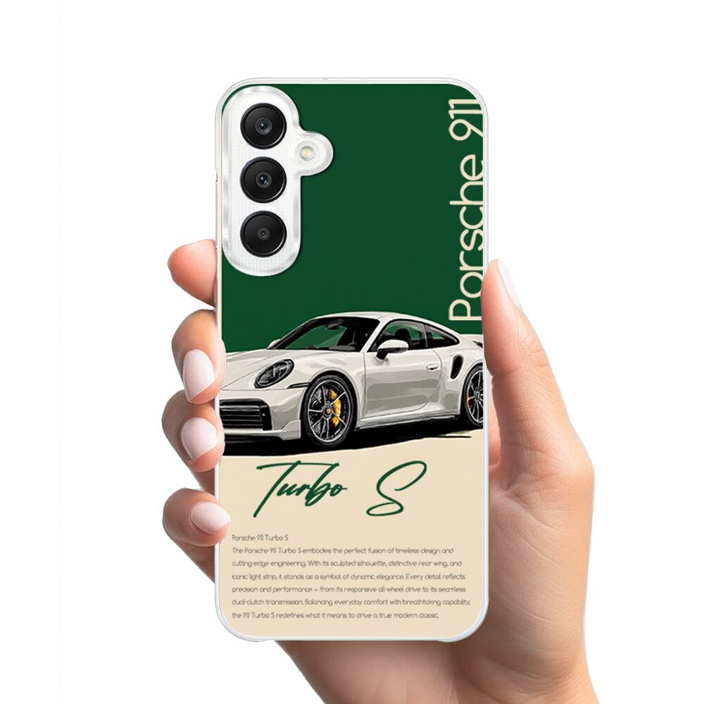 Etui do Samsung Galaxy A25 5G z MagSafe przeźroczyste, silikonowe Flexi, Szybkie Auta, Elegancja 911