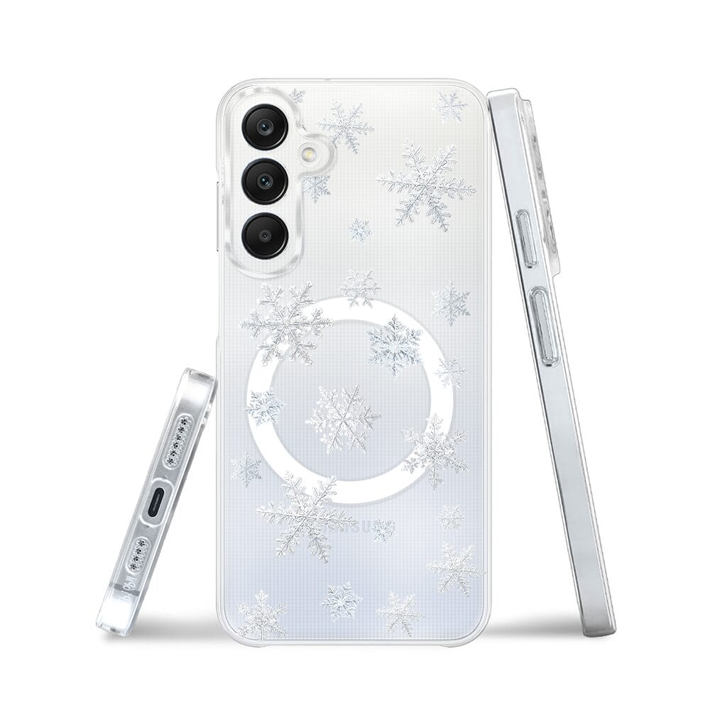 Etui do Samsung Galaxy A25 5G z MagSafe przeźroczyste, silikonowe Flexi, Zimowa magia, Delikatne płatki śniegu