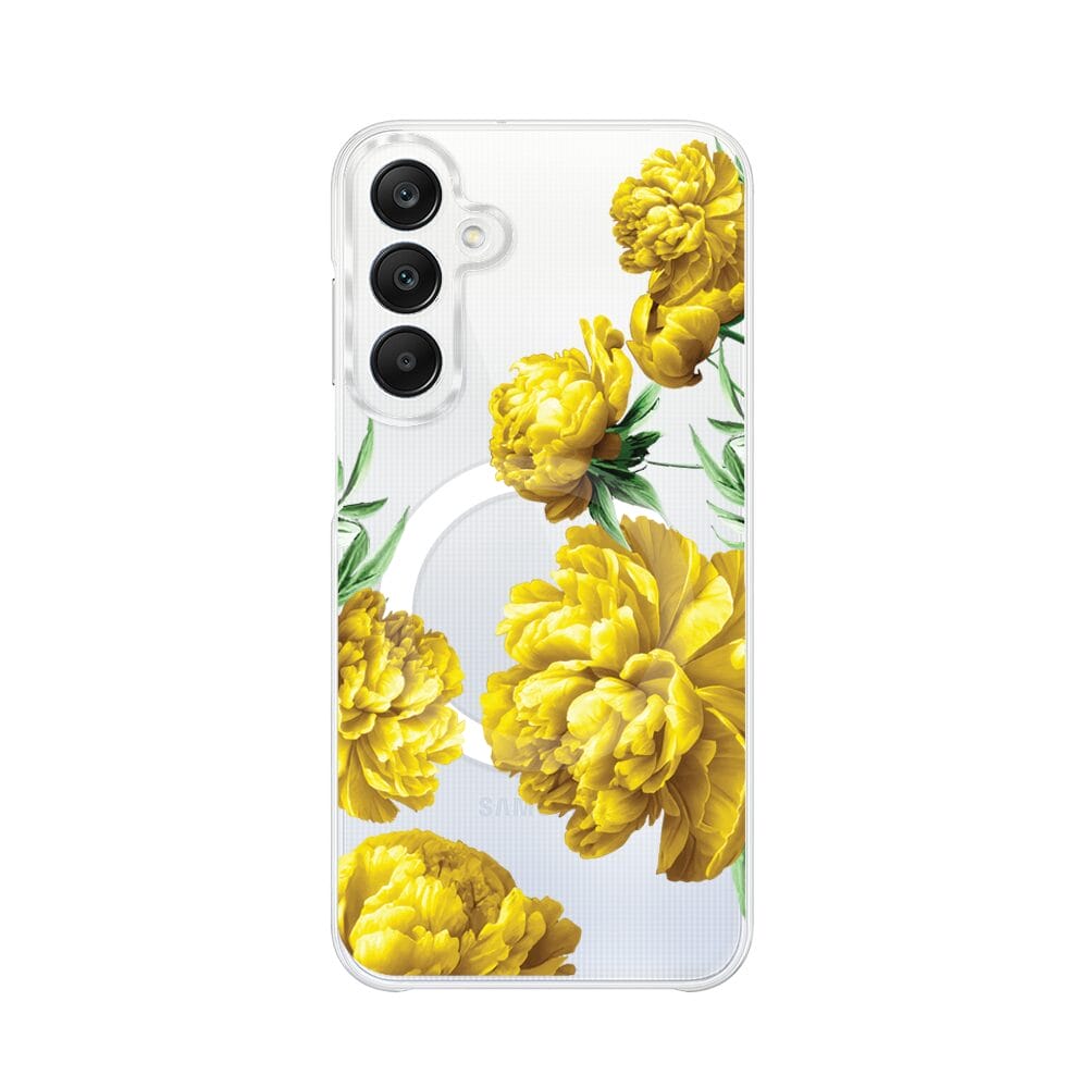 Etui do Samsung Galaxy A25 5G z MagSafe przeźroczyste, silikonowe Flexi, żółte piwonie