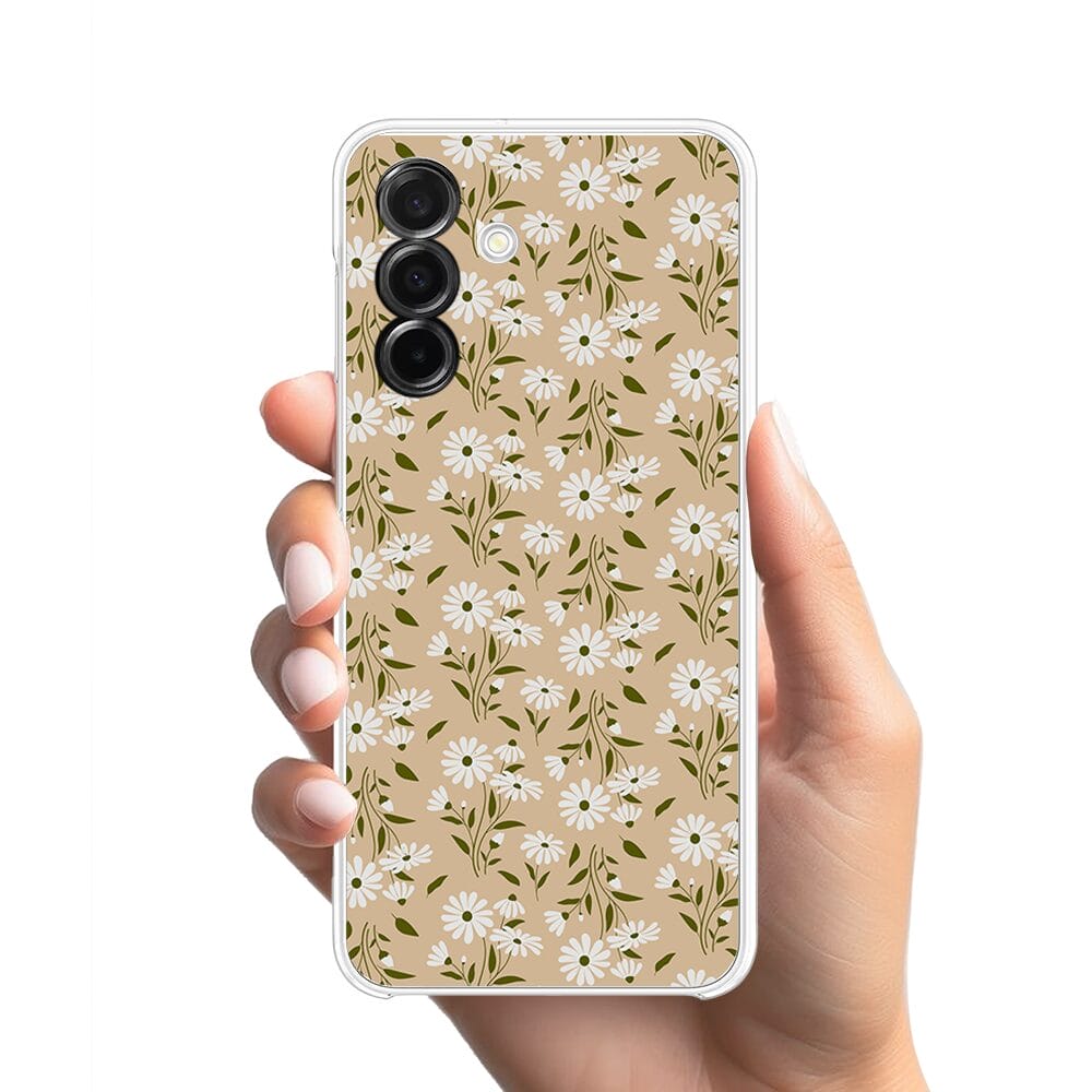 Etui do Samsung Galaxy A26 5G przeźroczyste, silikonowe Flexi, delikatne kwiatki na cielistym tle