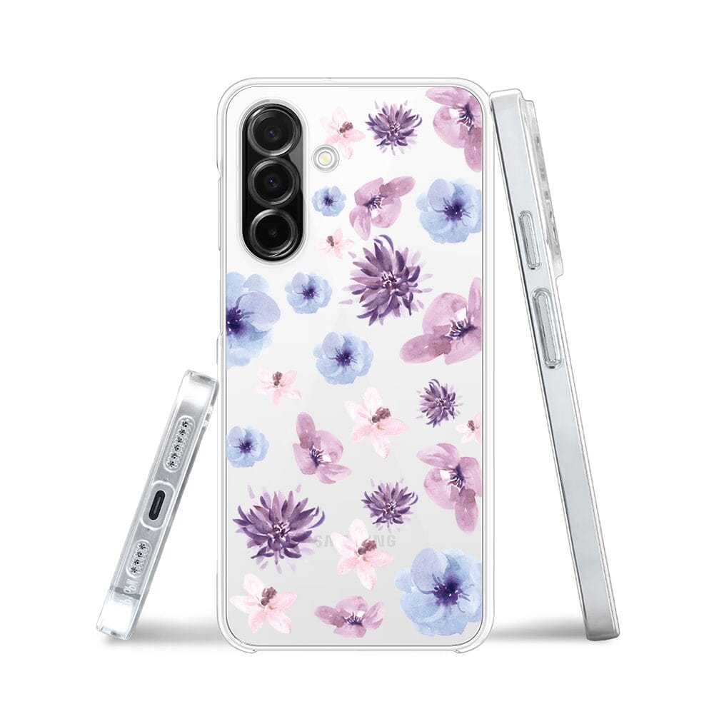 Etui do Samsung Galaxy A26 5G przeźroczyste, silikonowe Flexi, kwiatki niebieskie, fioletowe