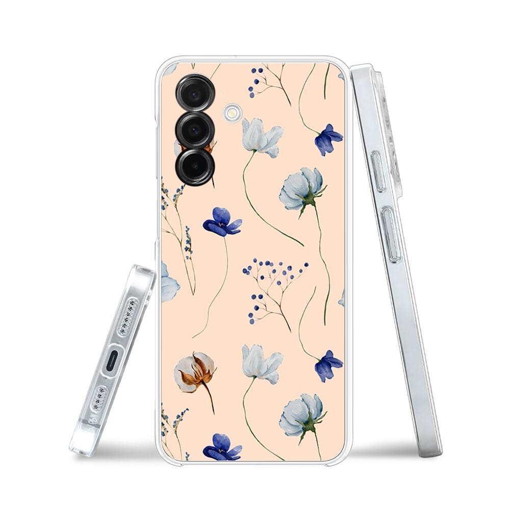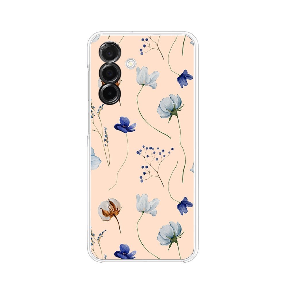 Etui do Samsung Galaxy A26 5G przeźroczyste, silikonowe Flexi, kwiatki niebieskie na pudrowym tle