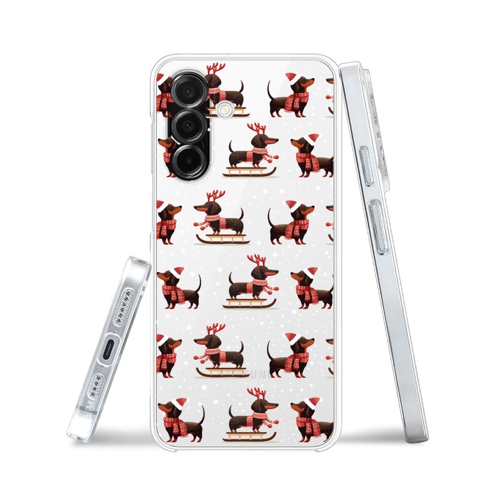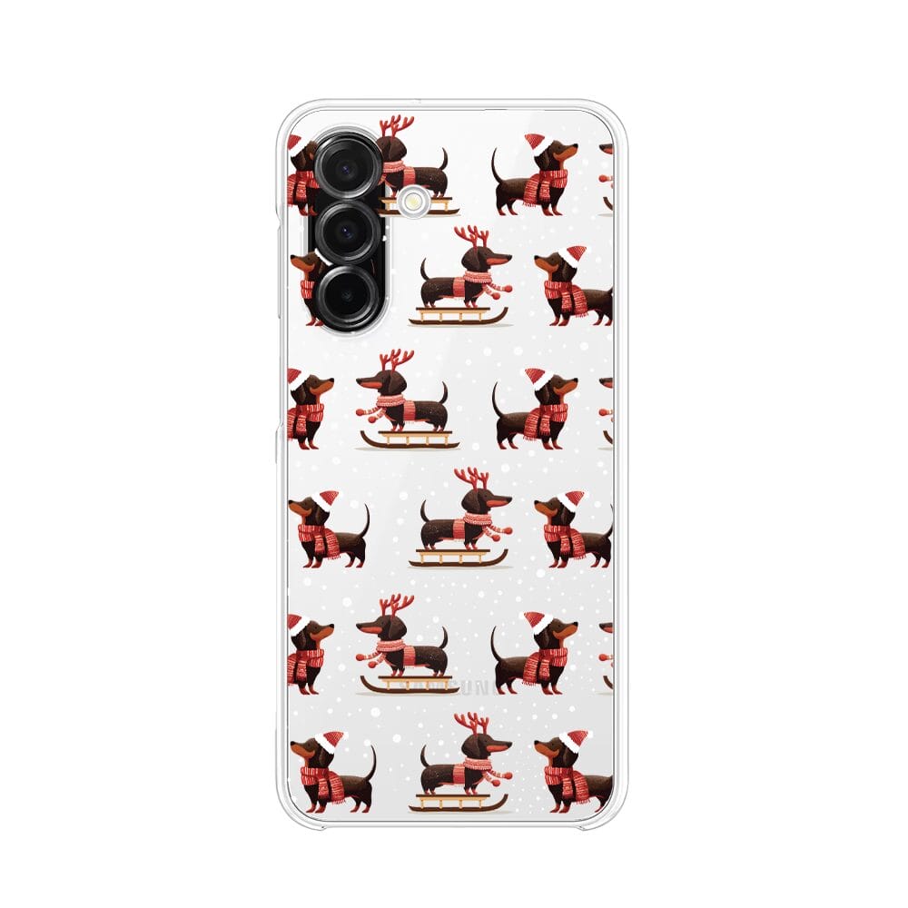 Etui do Samsung Galaxy A26 5G przeźroczyste, silikonowe Flexi, Przytulne święta, Jamniki na saniach