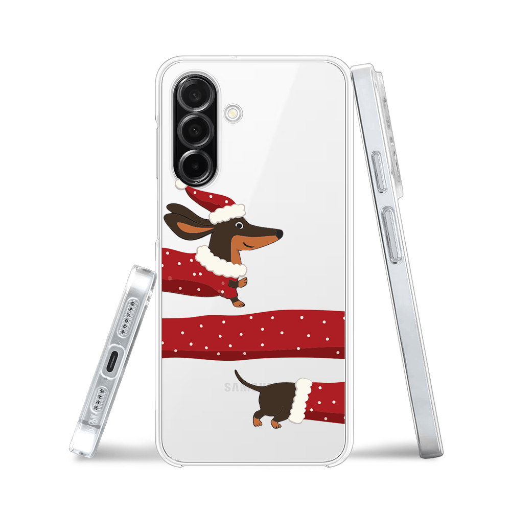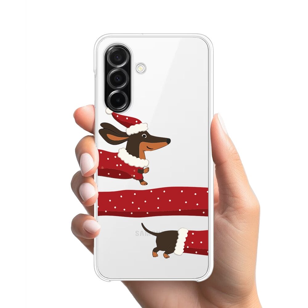 Etui do Samsung Galaxy A26 5G przeźroczyste, silikonowe Flexi, Przytulne święta, świąteczny jamnik