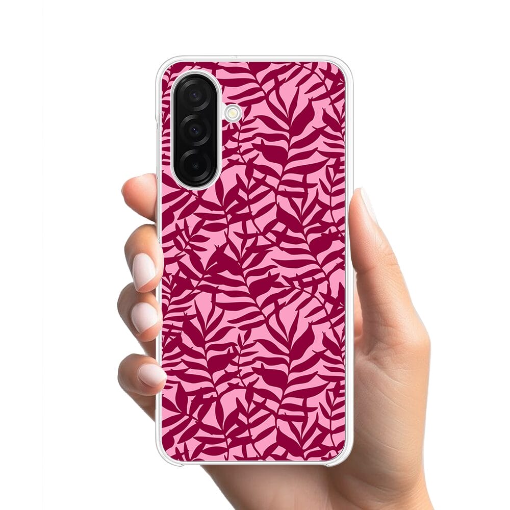 Etui do Samsung Galaxy A26 5G z MagSafe przeźroczyste, silikonowe Flexi, bordowe liście