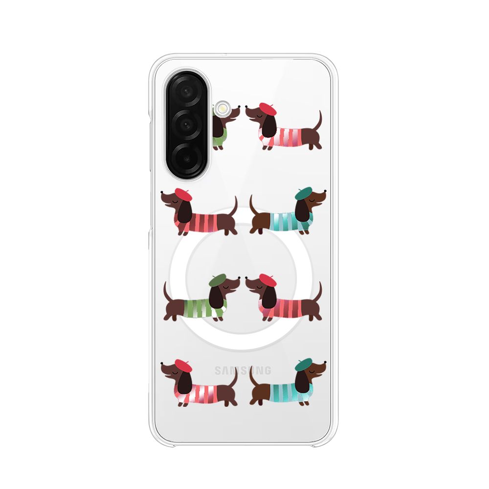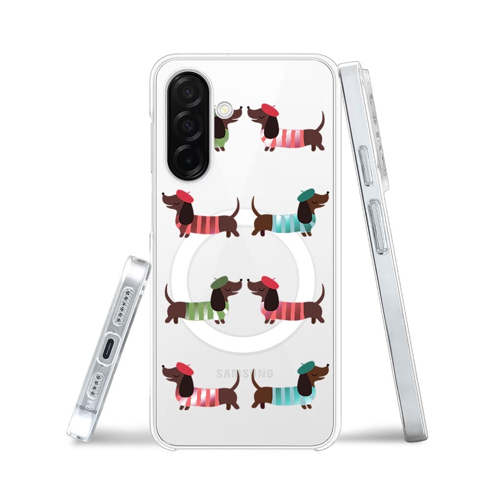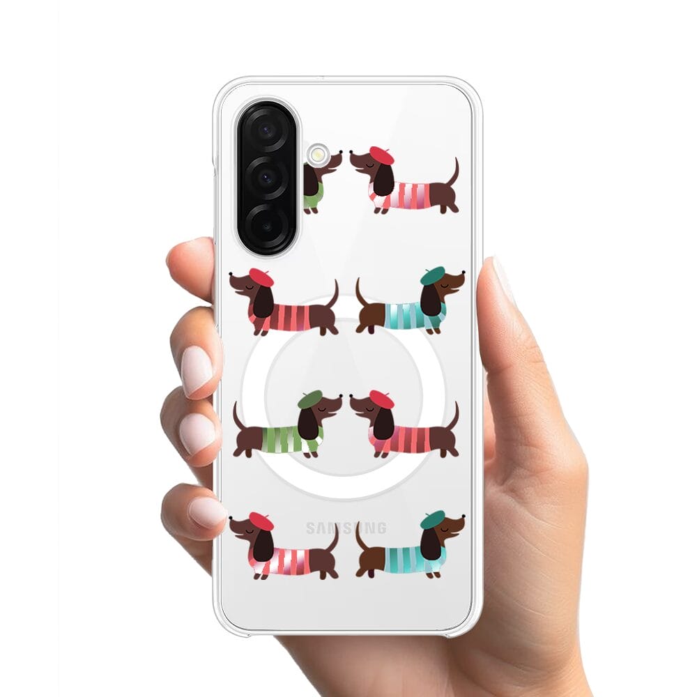 Etui do Samsung Galaxy A26 5G z MagSafe przeźroczyste, silikonowe Flexi, jamnik w Paryżu