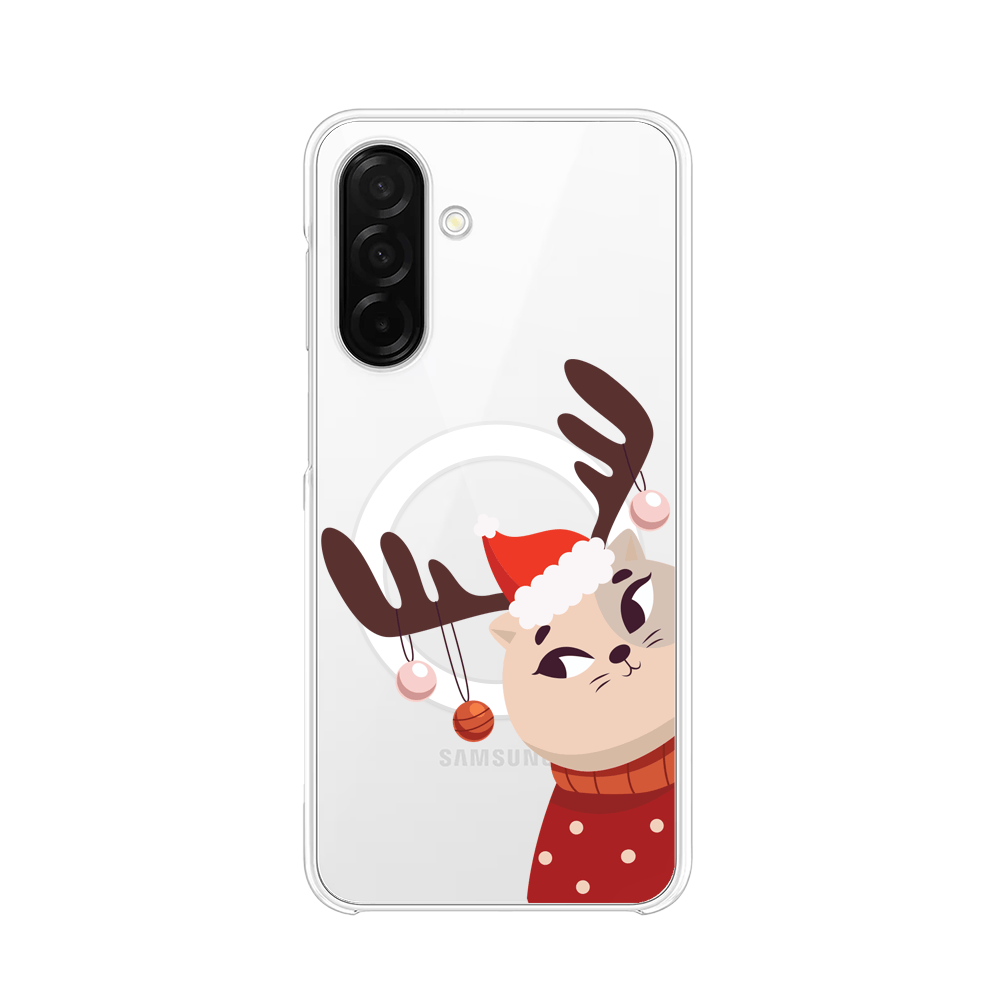 Etui do Samsung Galaxy A26 5G z MagSafe przeźroczyste, silikonowe Flexi, Kotek przebrany za reniferka