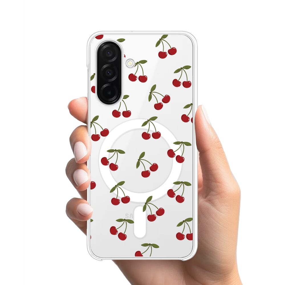 Etui do Samsung Galaxy A26 5G z MagSafe przeźroczyste, silikonowe Flexi, Mini Patterns, Wiśnie