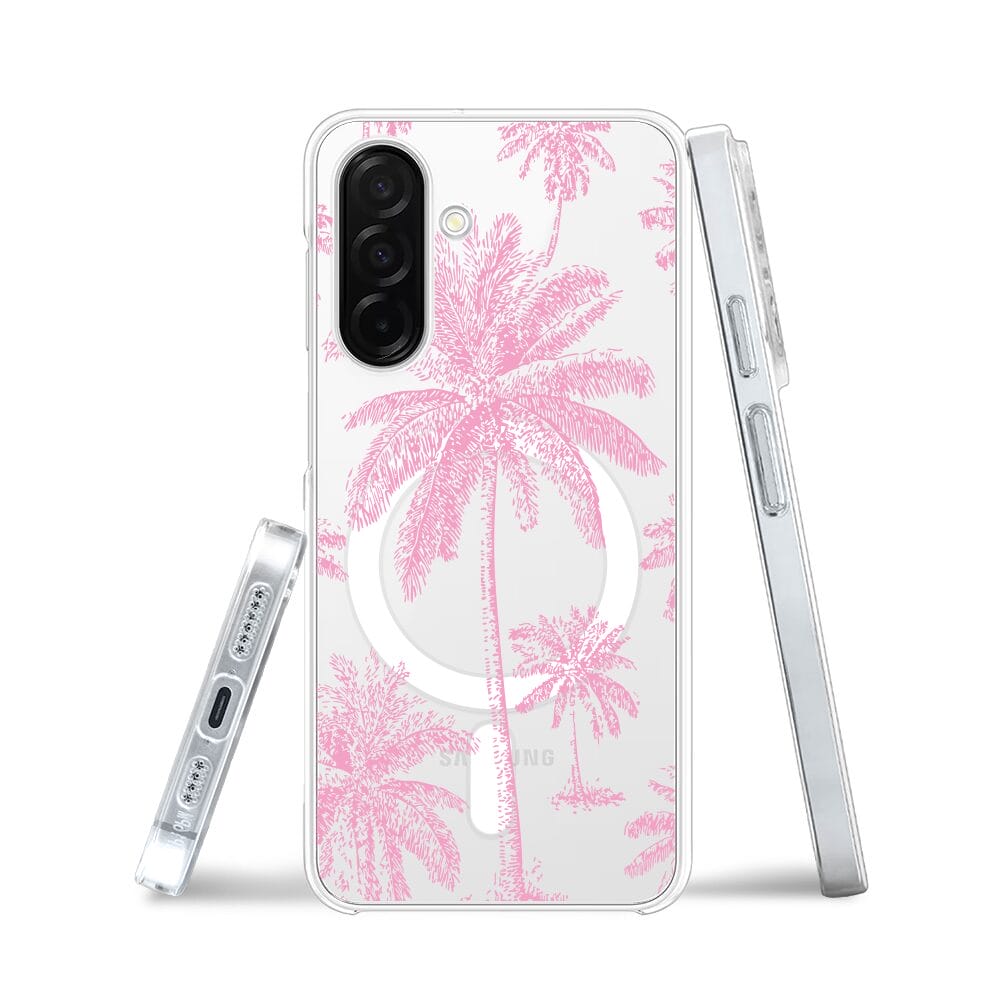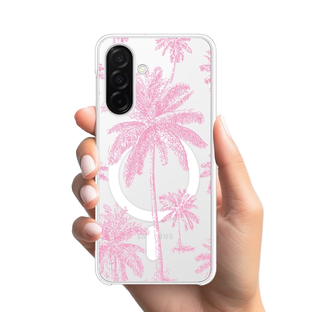 Etui do Samsung Galaxy A26 5G z MagSafe przeźroczyste, silikonowe Flexi, Mystic, Różowe palmy