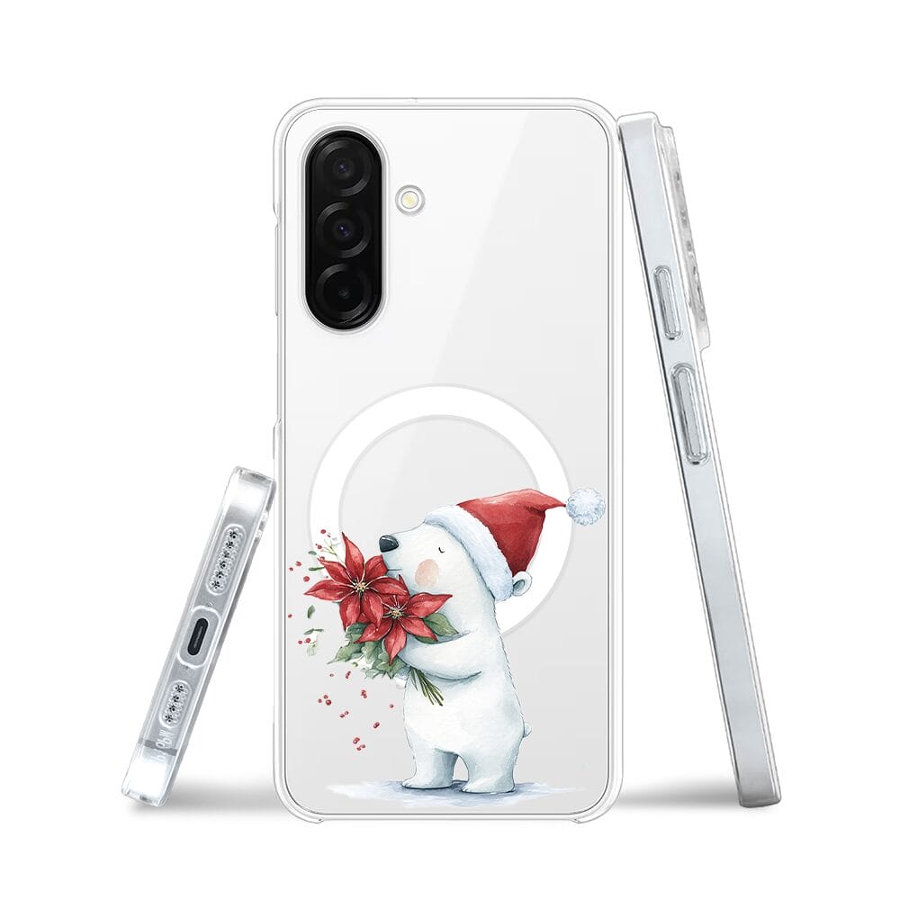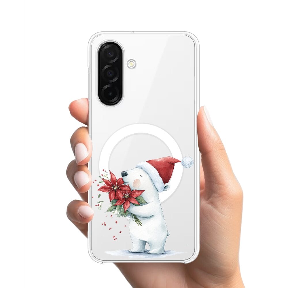 Etui do Samsung Galaxy A26 5G z MagSafe przeźroczyste, silikonowe Flexi, Przytulne święta, Miś świąteczny