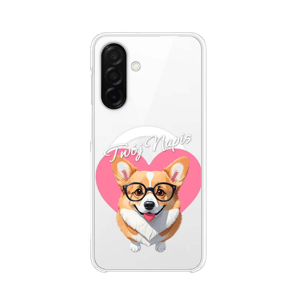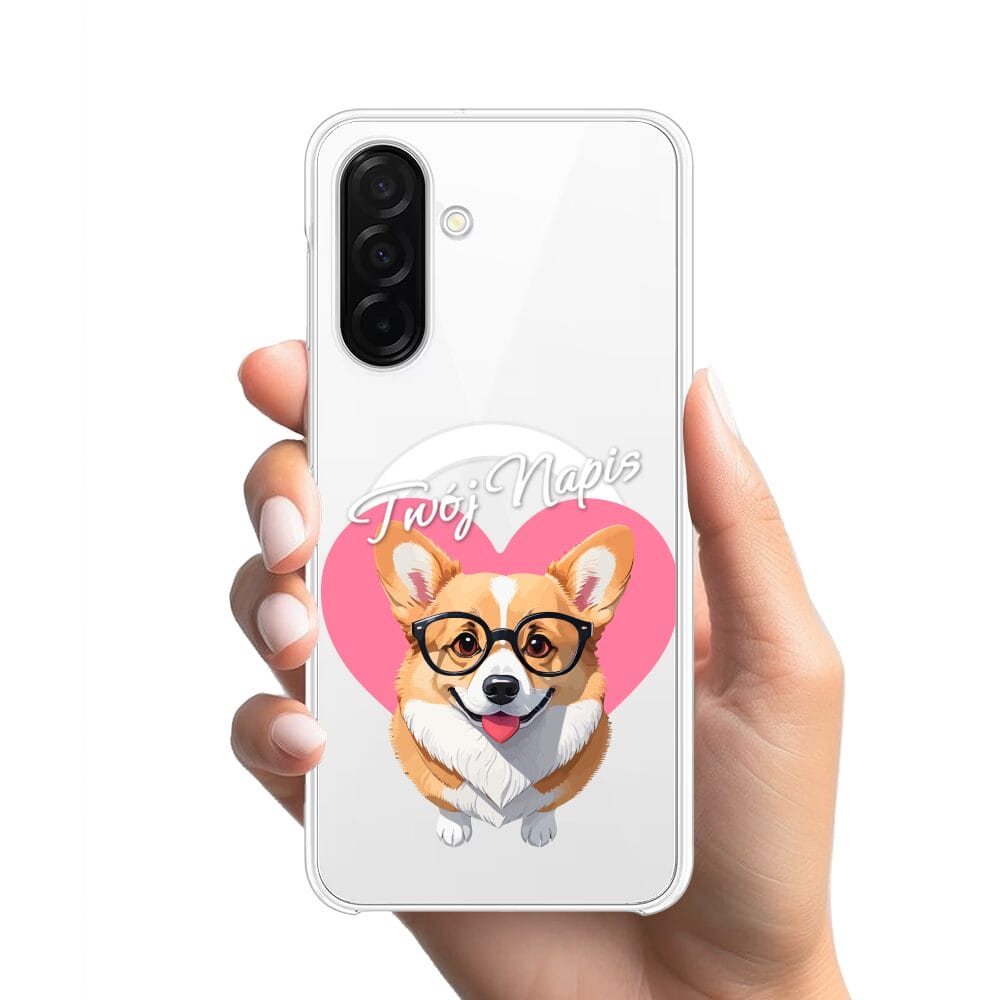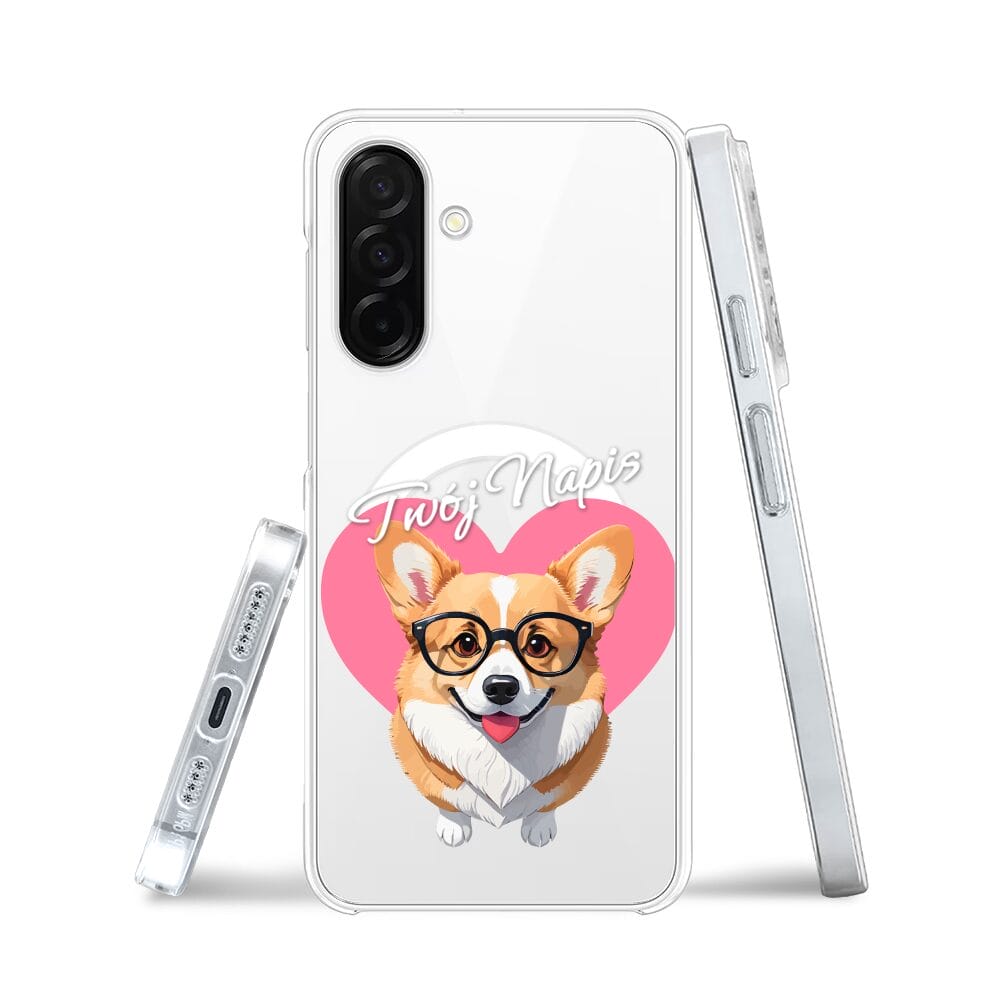 Etui do Samsung Galaxy A26 5G z MagSafe przeźroczyste, silikonowe Flexi, Puppy Love, pies rasy Corgi