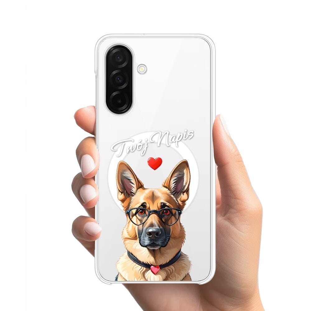 Etui do Samsung Galaxy A26 5G z MagSafe przeźroczyste, silikonowe Flexi, Puppy Love, pies rasy Owczarek Niemiecki