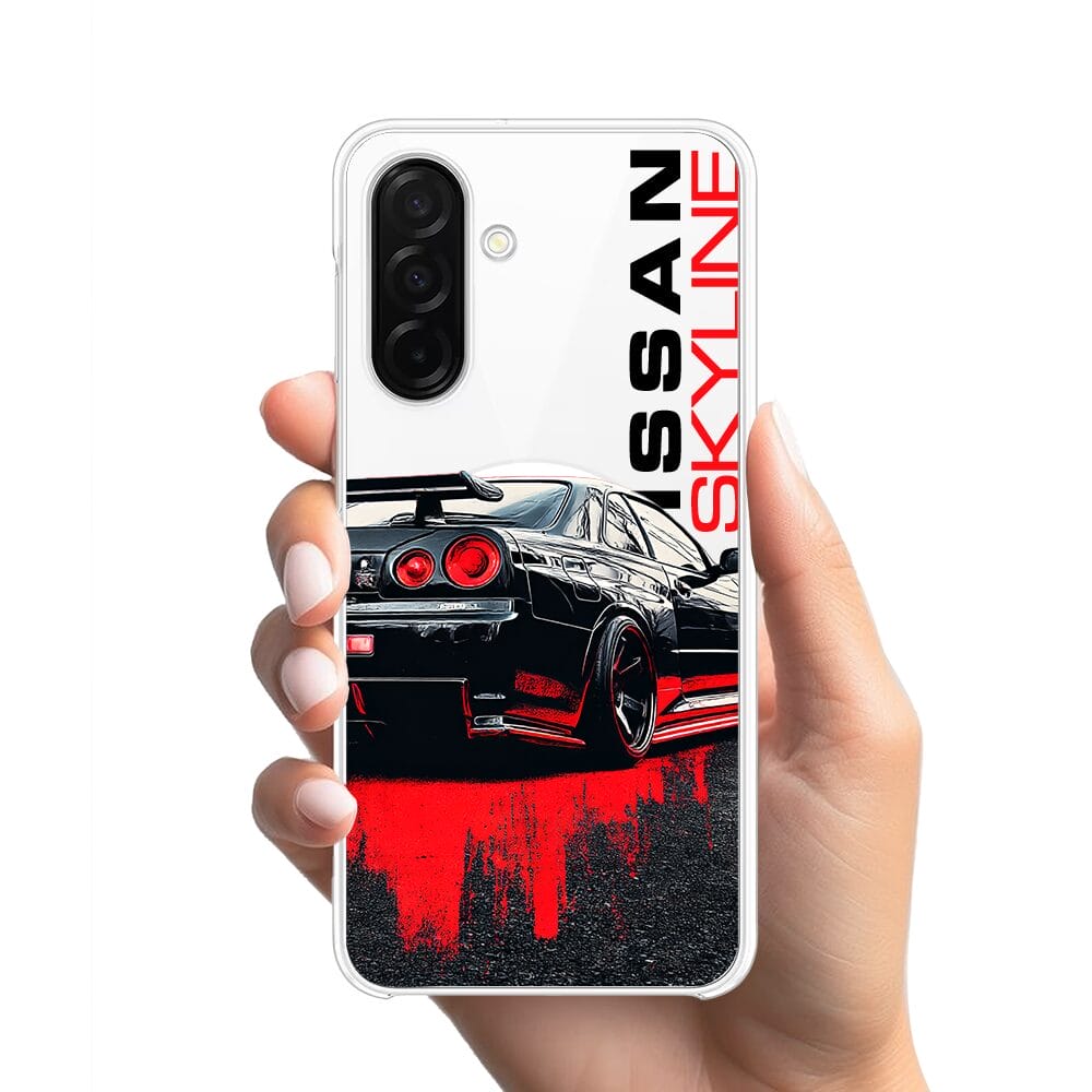 Etui do Samsung Galaxy A26 5G z MagSafe przeźroczyste, silikonowe Flexi, Szybkie Auta, czarny Skyline
