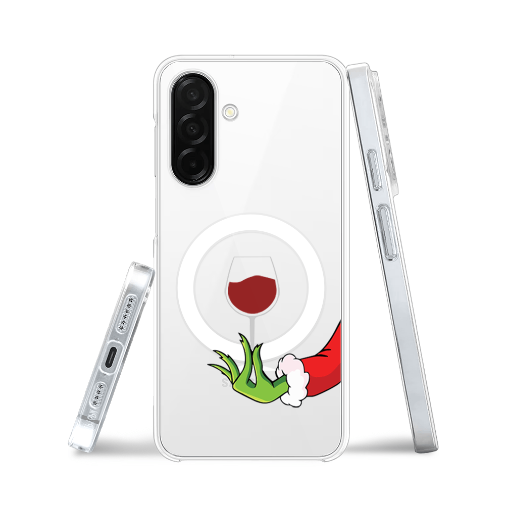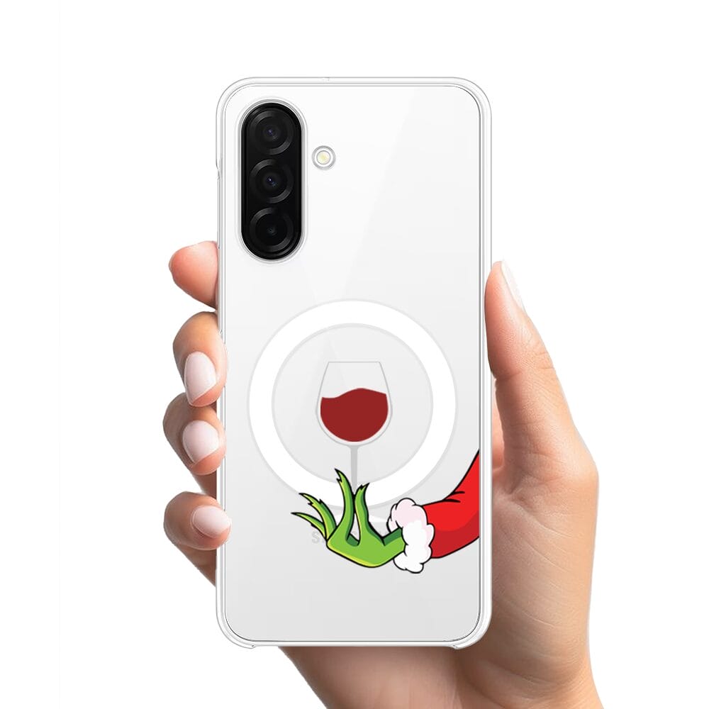 Etui do Samsung Galaxy A26 5G z MagSafe przeźroczyste, silikonowe Flexi, Zielony psotnik z lampką wina