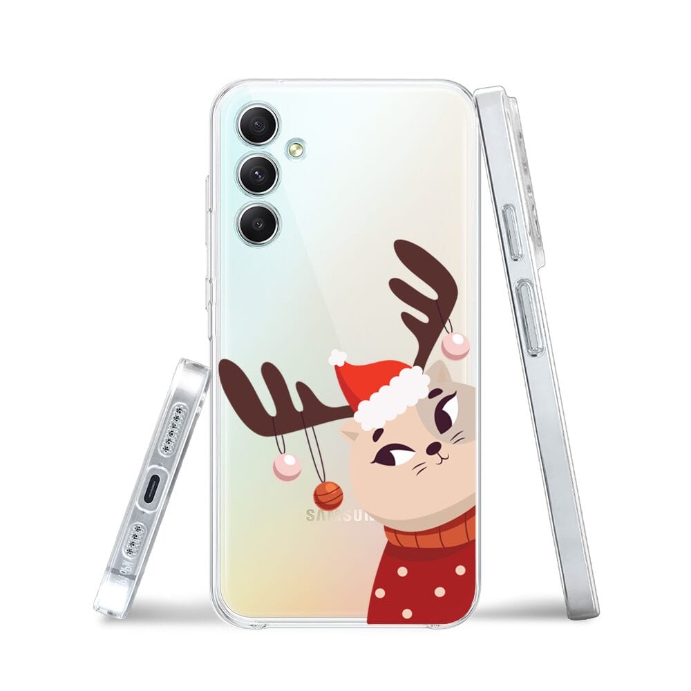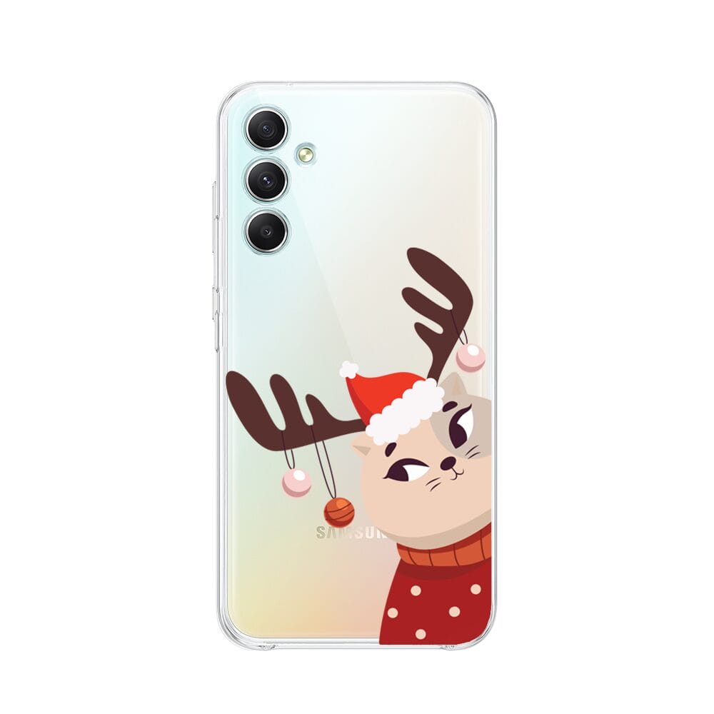 Etui do Samsung Galaxy A34 5G przeźroczyste, silikonowe Flexi, Kotek przebrany za reniferka
