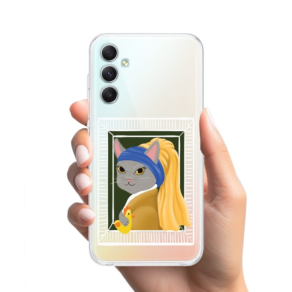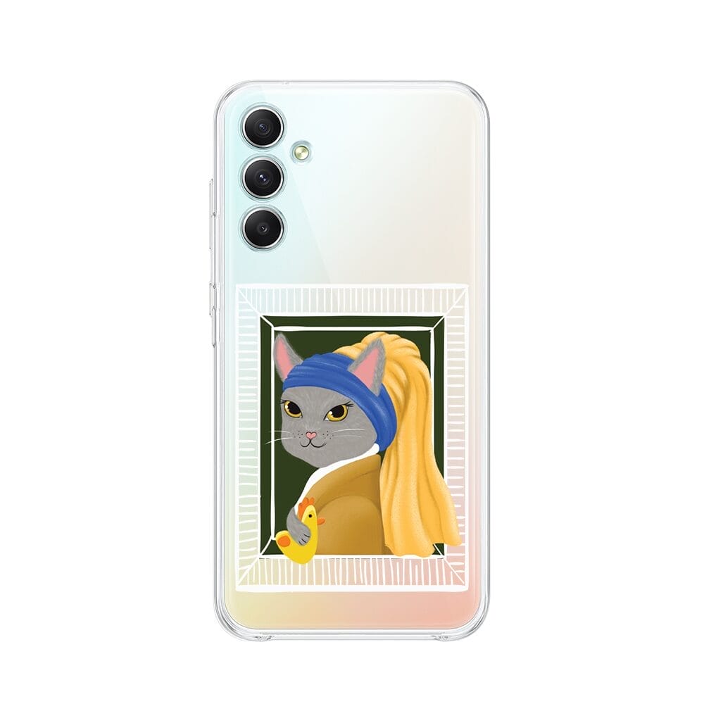 Etui do Samsung Galaxy A34 5G przeźroczyste, silikonowe Flexi, kotek z kurczakiem
