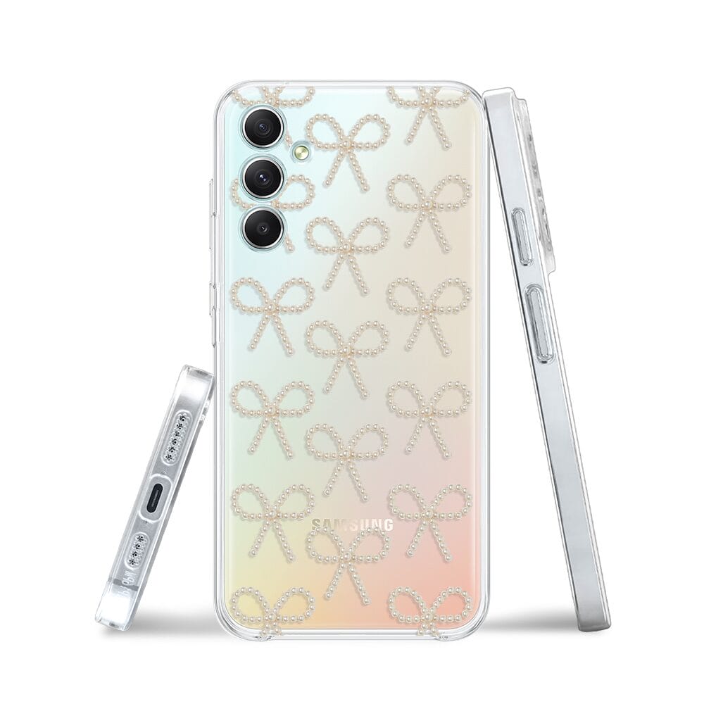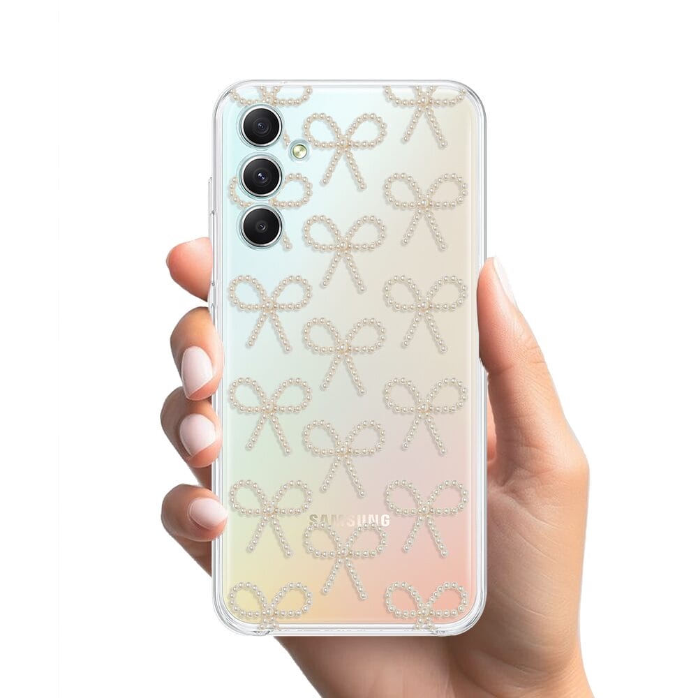 Etui do Samsung Galaxy A34 5G przeźroczyste, silikonowe Flexi, Przytulne święta, złote kokardki