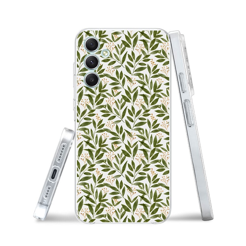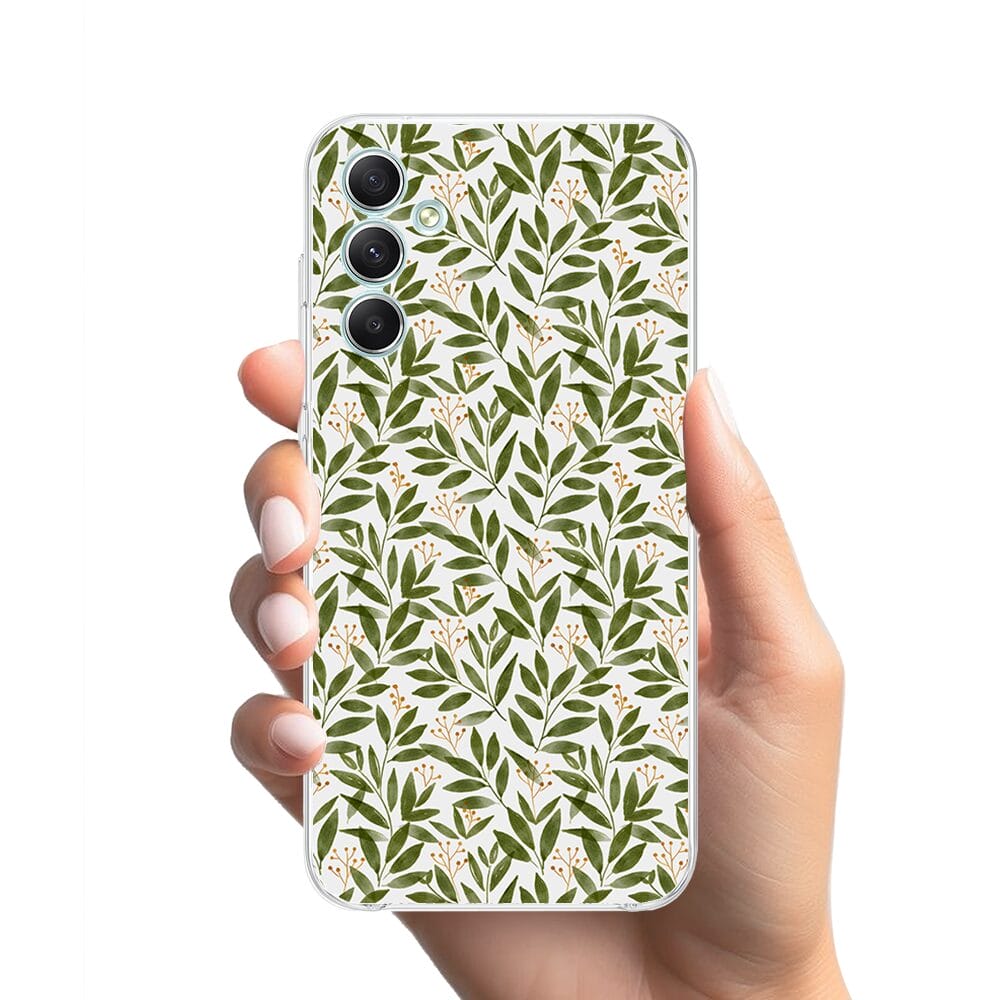 Etui do Samsung Galaxy A34 5G przeźroczyste, silikonowe Flexi, zielone gałązki