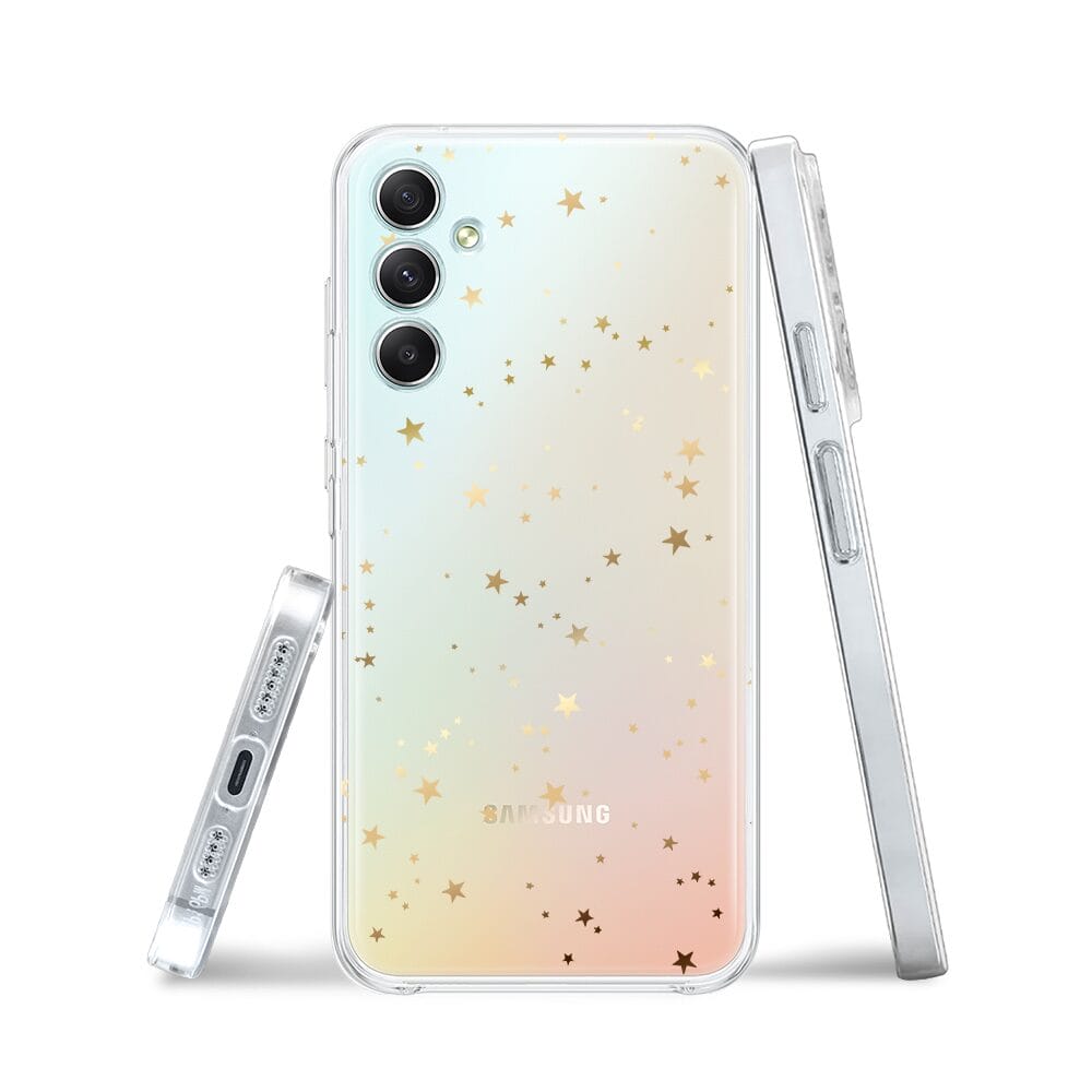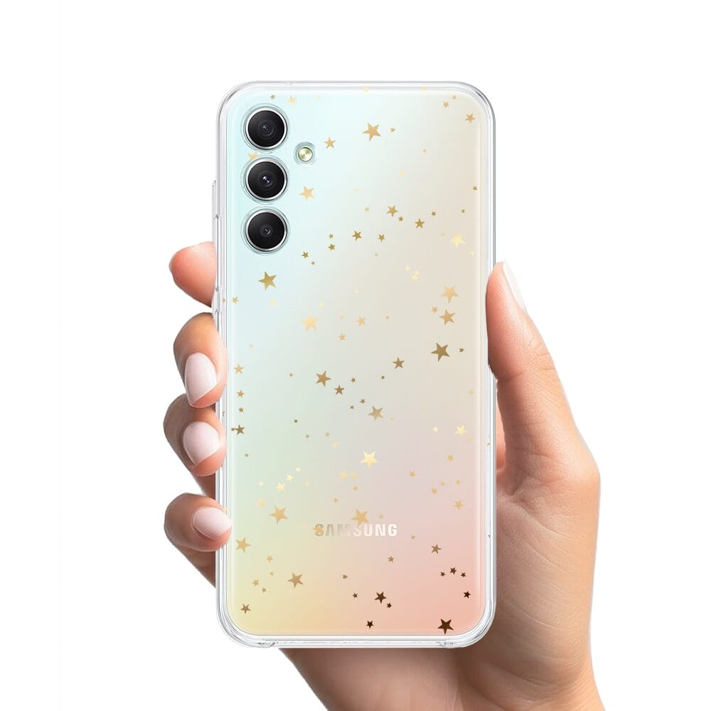 Etui do Samsung Galaxy A34 5G przeźroczyste, silikonowe Flexi, Złote gwiazdki