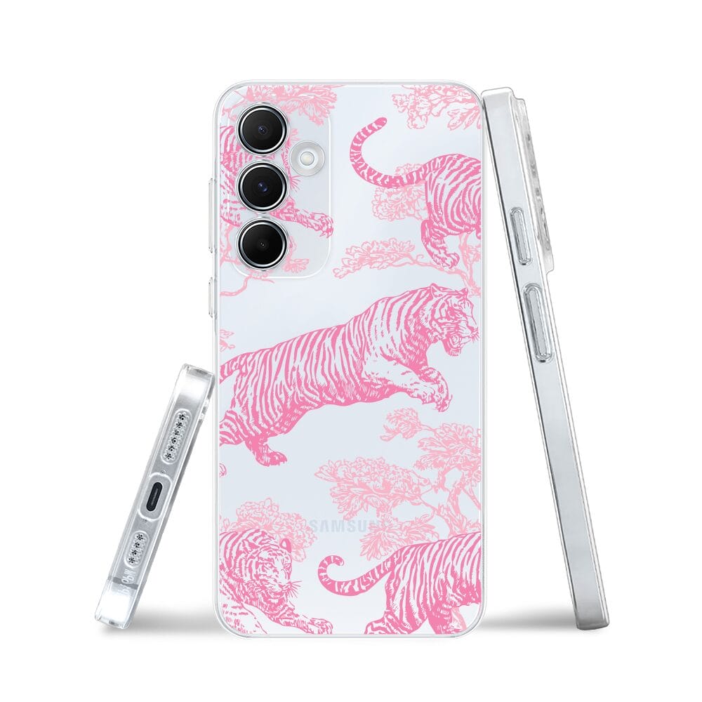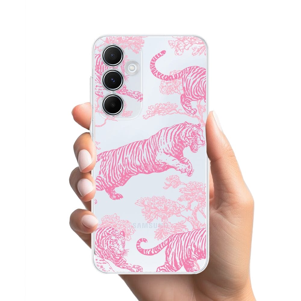 Etui do Samsung Galaxy A35 5G przeźroczyste, silikonowe Flexi, Mystic, Różowe tygrysy