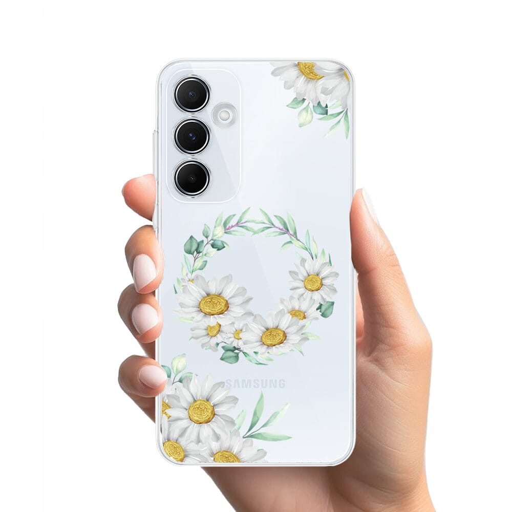 Etui do Samsung Galaxy A35 5G przeźroczyste, silikonowe Flexi, wianek stokrotek