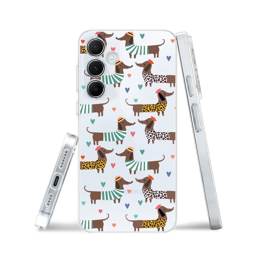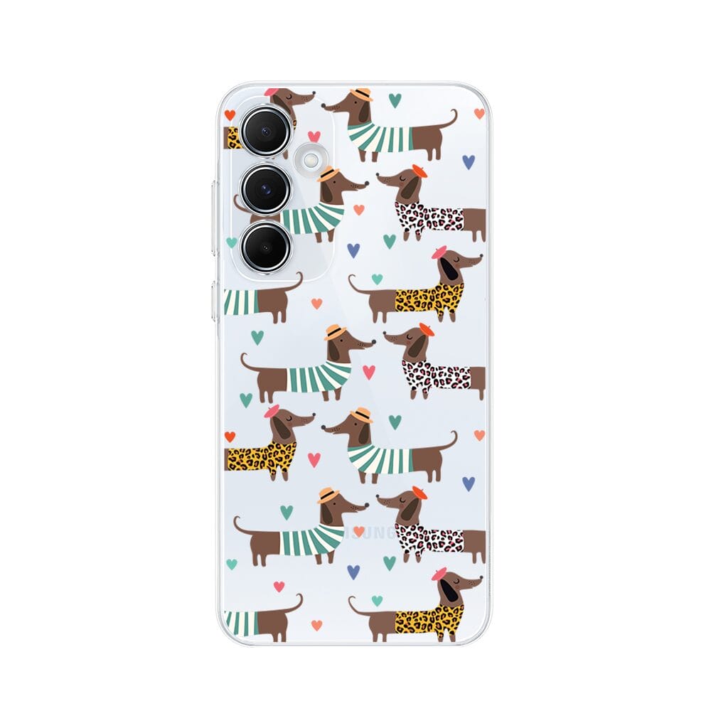 Etui do Samsung Galaxy A35 5G przeźroczyste, silikonowe Flexi, zakochane jamniki