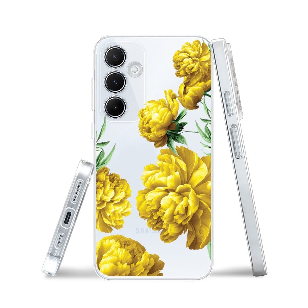 Etui do Samsung Galaxy A35 5G przeźroczyste, silikonowe Flexi, żółte piwonie