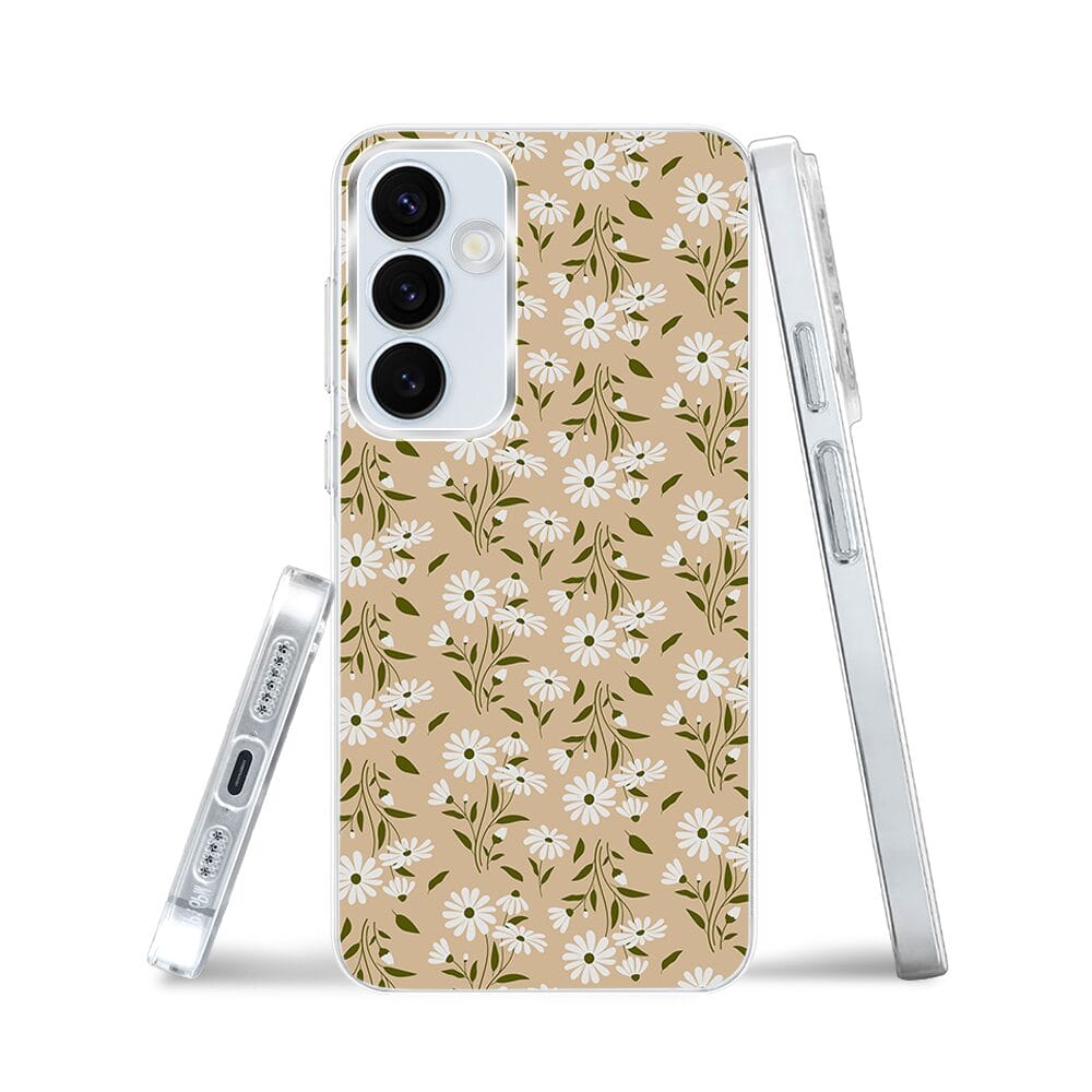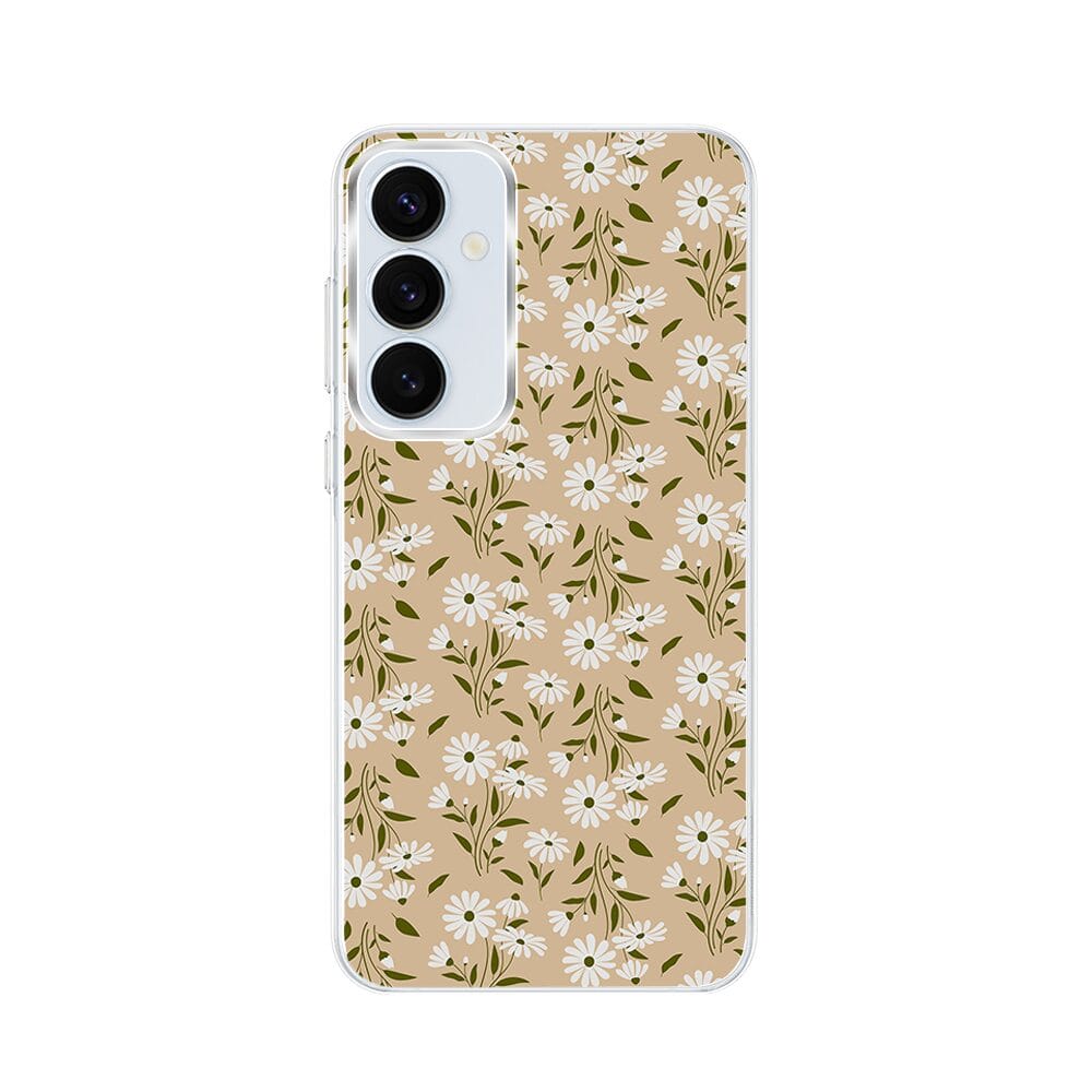Etui do Samsung Galaxy A35 5G z MagSafe przeźroczyste, silikonowe Flexi, delikatne kwiatki na cielistym tle