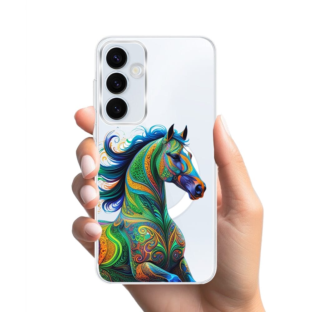 Etui do Samsung Galaxy A35 5G z MagSafe przeźroczyste, silikonowe Flexi, Dzika Mandala, Koń