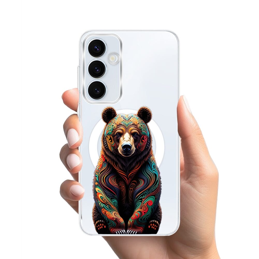 Etui do Samsung Galaxy A35 5G z MagSafe przeźroczyste, silikonowe Flexi, Dzika Mandala, Niedźwiedź