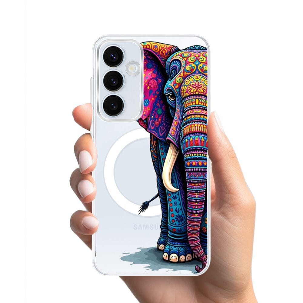 Etui do Samsung Galaxy A35 5G z MagSafe przeźroczyste, silikonowe Flexi, Dzika Mandala, Słoń