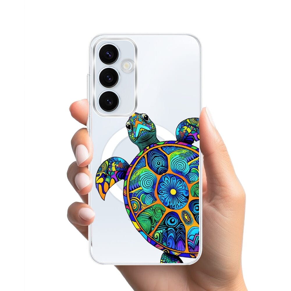 Etui do Samsung Galaxy A35 5G z MagSafe przeźroczyste, silikonowe Flexi, Dzika Mandala, Żółw