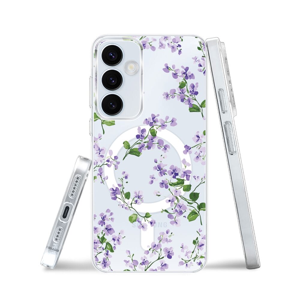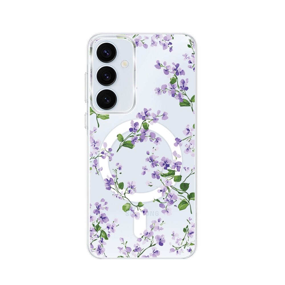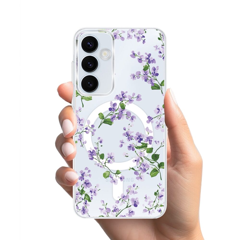 Etui do Samsung Galaxy A35 5G z MagSafe przeźroczyste, silikonowe Flexi, Fioletowe Bratki