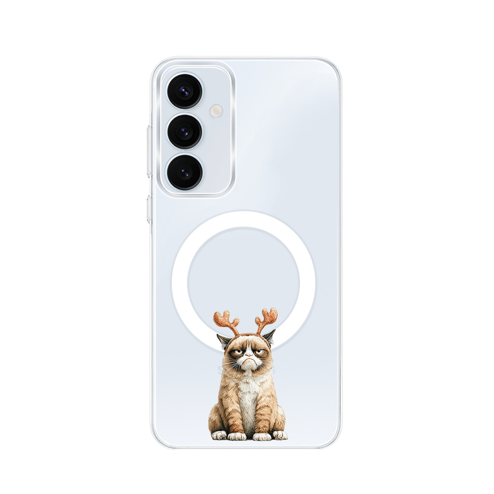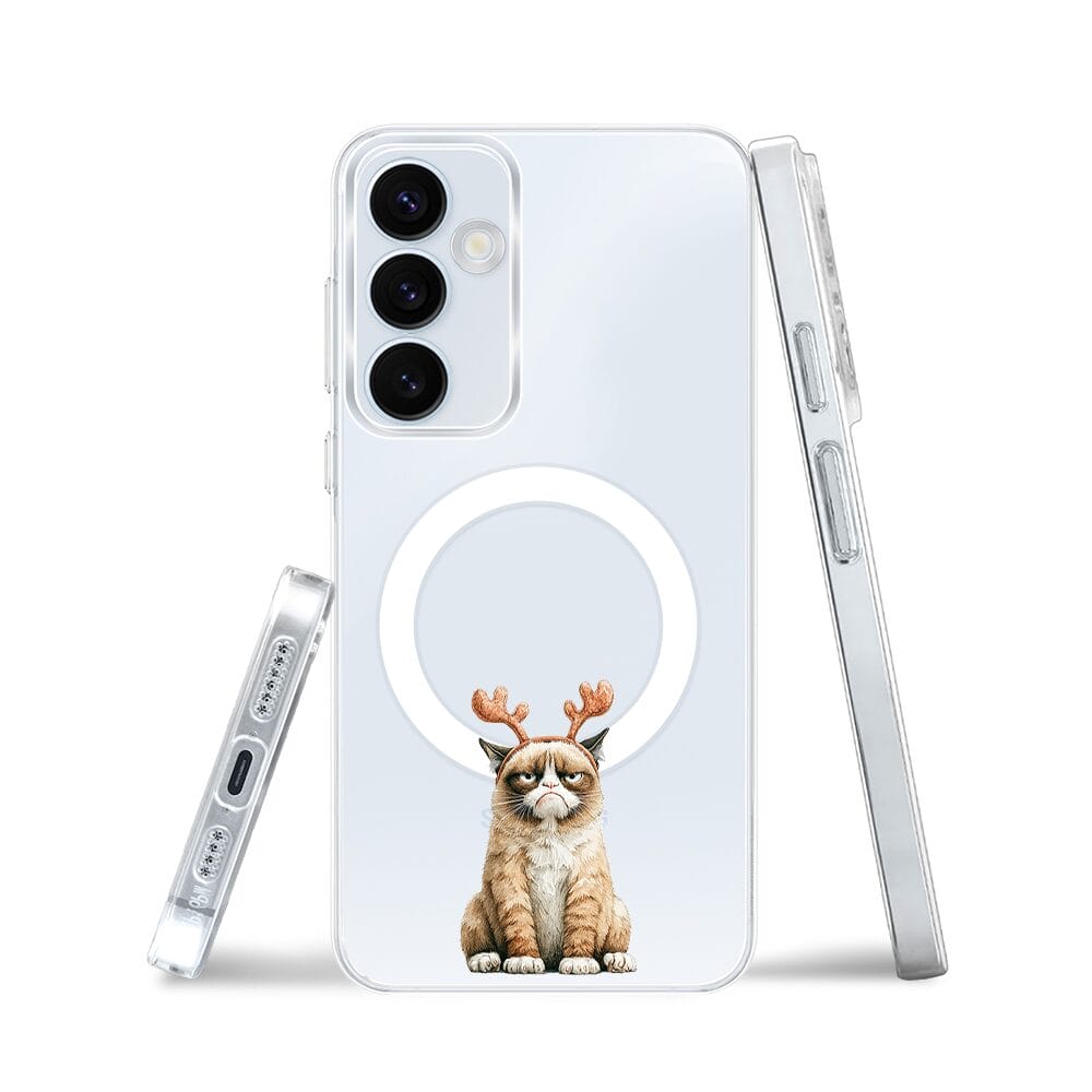Etui do Samsung Galaxy A35 5G z MagSafe przeźroczyste, silikonowe Flexi, Przytulne święta, Kot który nie chciał być reniferem