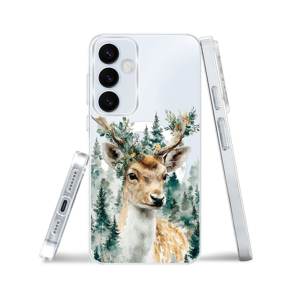 Etui do Samsung Galaxy A35 5G z MagSafe przeźroczyste, silikonowe Flexi, Przytulne święta, Leśny jelonek