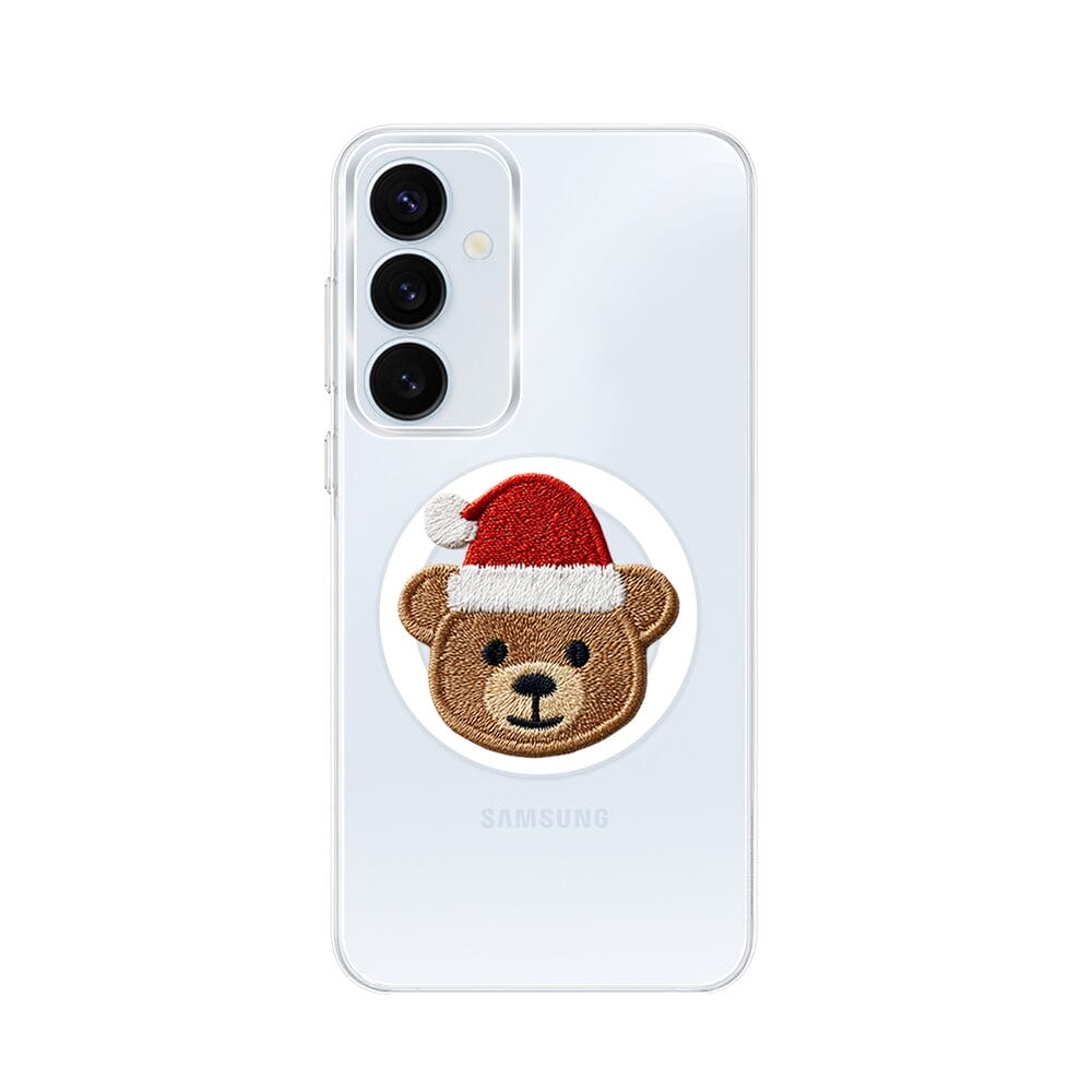 Etui do Samsung Galaxy A35 5G z MagSafe przeźroczyste, silikonowe Flexi, Przytulne święta, Miś mikołajek