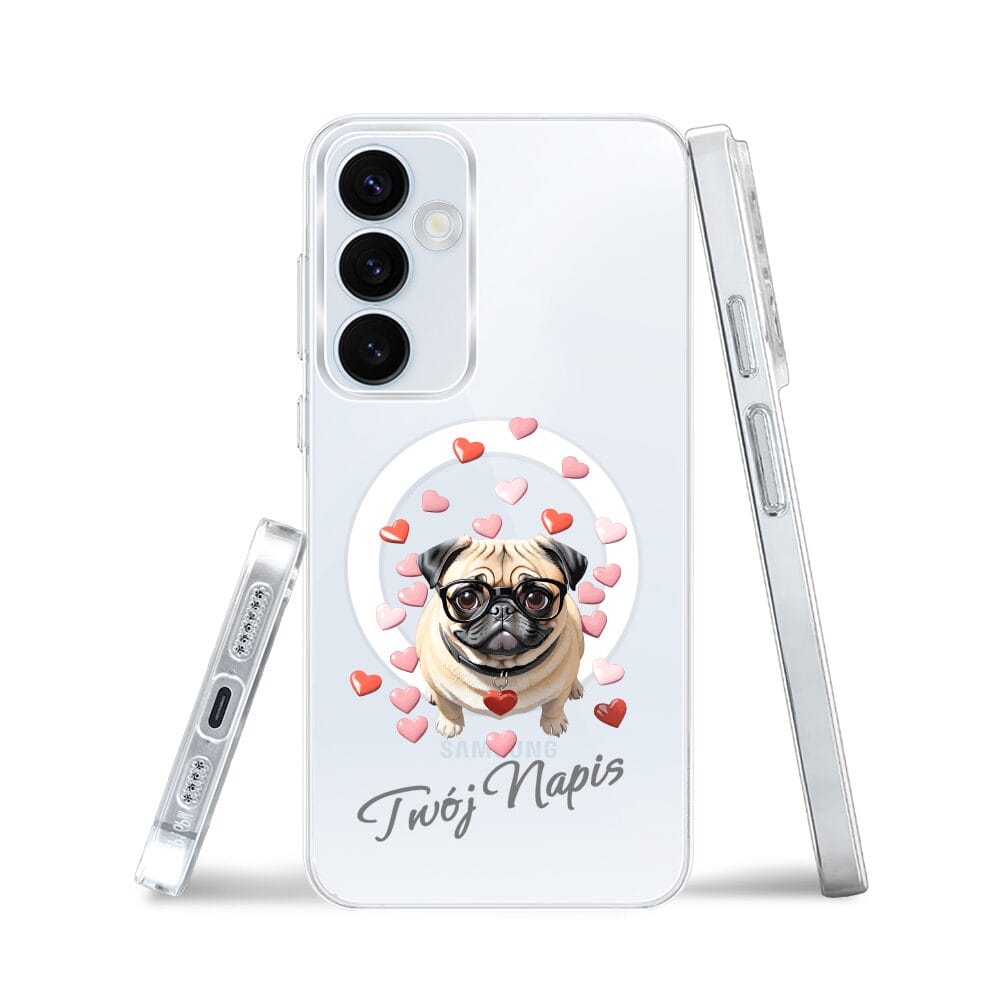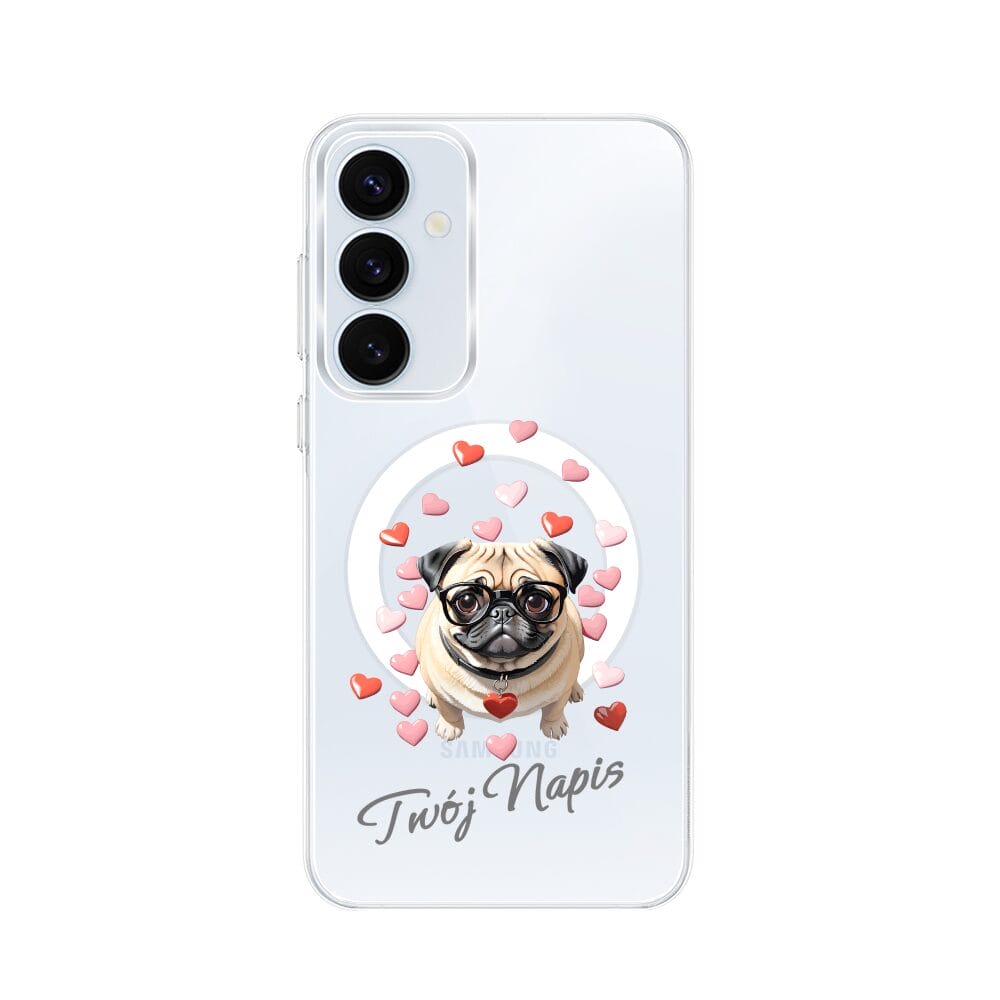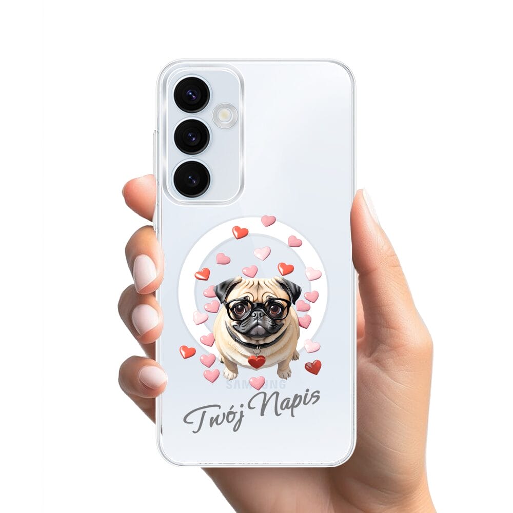 Etui do Samsung Galaxy A35 5G z MagSafe przeźroczyste, silikonowe Flexi, Puppy Love, pies rasy Mops