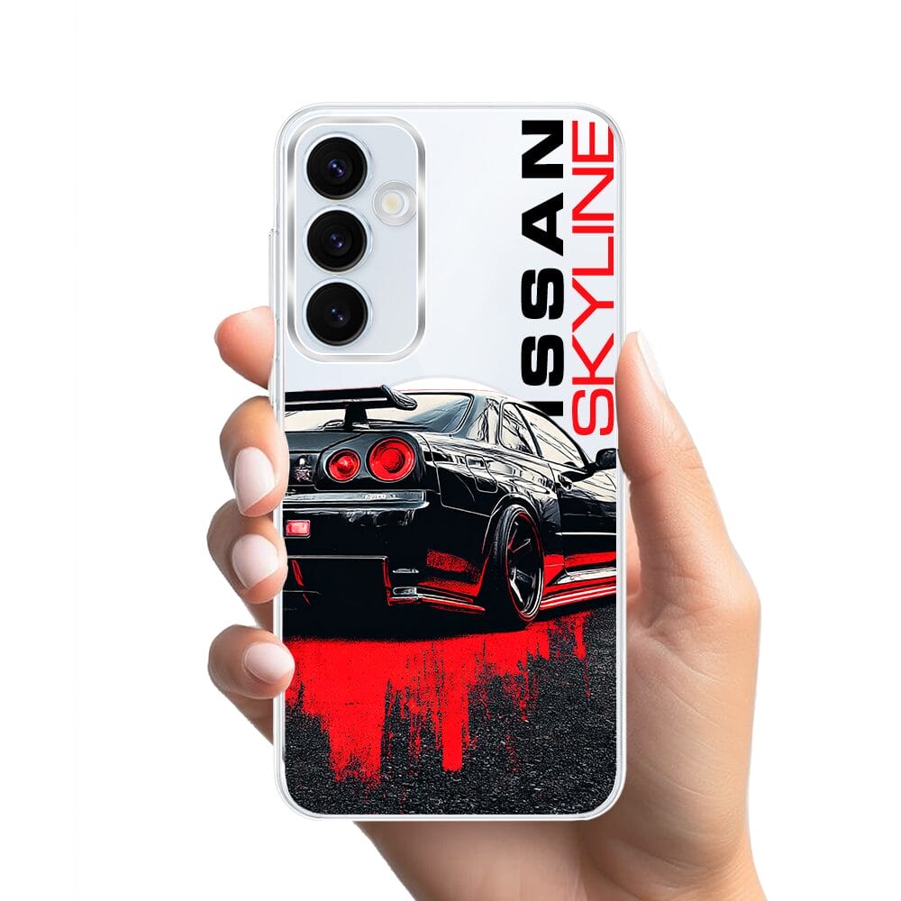 Etui do Samsung Galaxy A35 5G z MagSafe przeźroczyste, silikonowe Flexi, Szybkie Auta, czarny Skyline