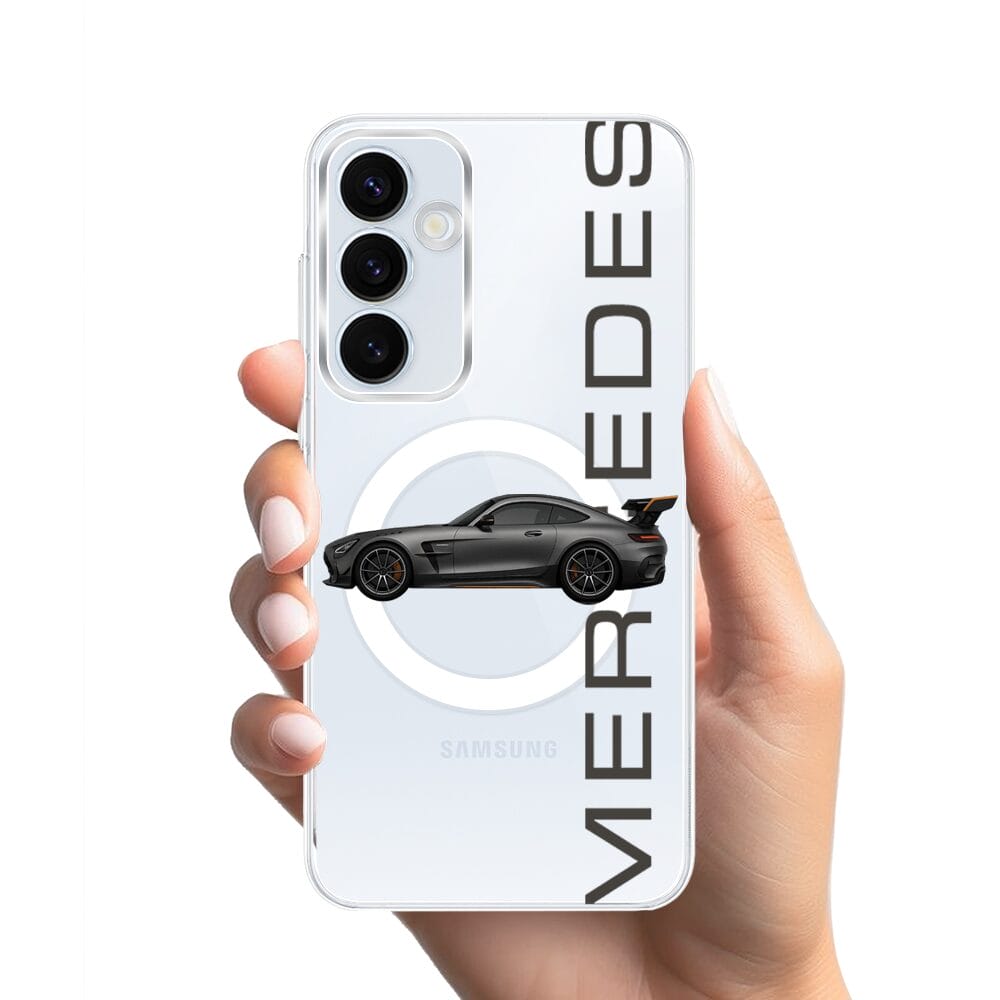 Etui do Samsung Galaxy A35 5G z MagSafe przeźroczyste, silikonowe Flexi, Szybkie Auta, Stalowe AMG-GT