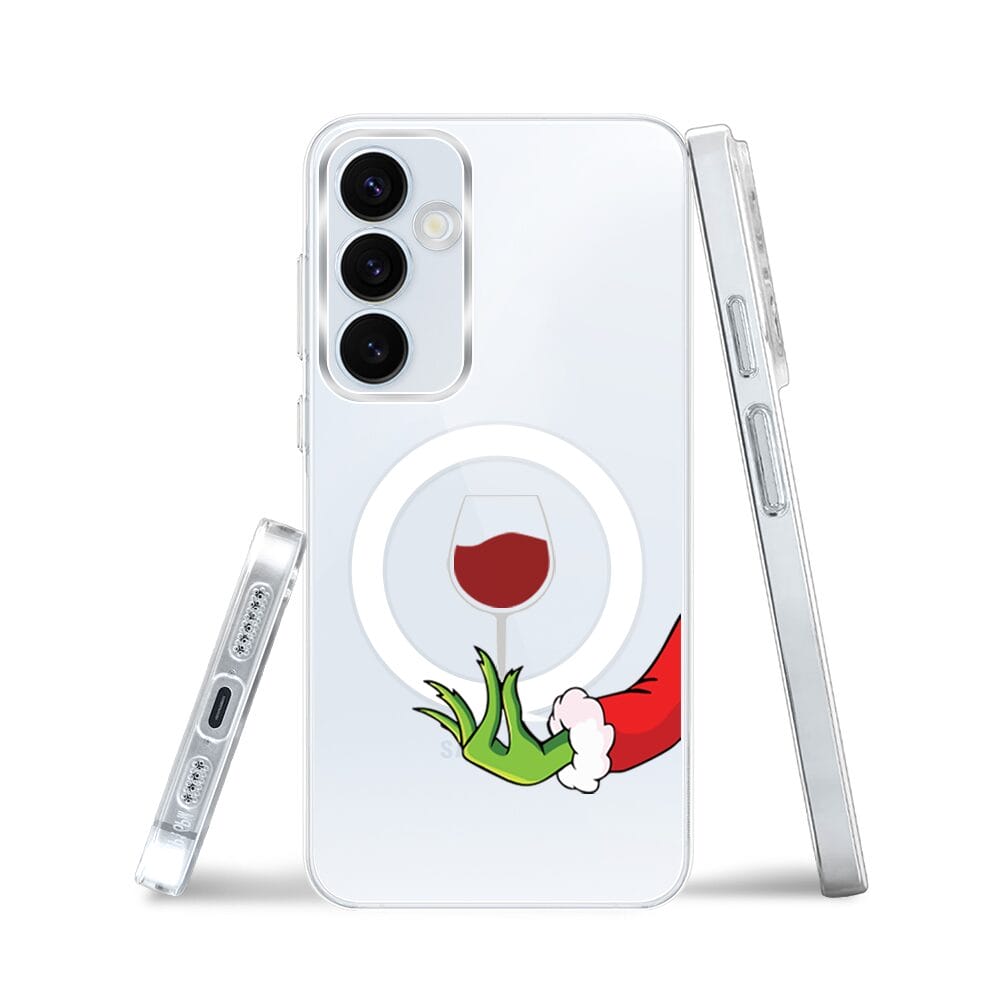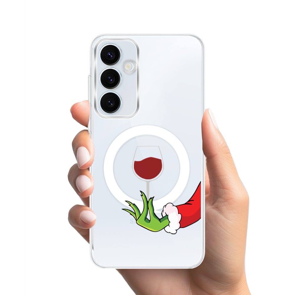 Etui do Samsung Galaxy A35 5G z MagSafe przeźroczyste, silikonowe Flexi, Zielony psotnik z lampką wina