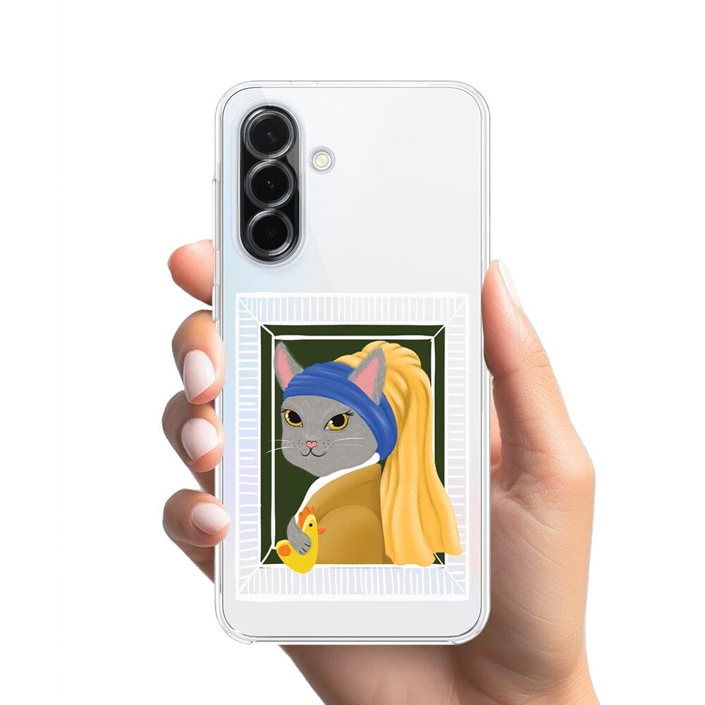 Etui do Samsung Galaxy A36 5G przeźroczyste, silikonowe Flexi, kotek z kurczakiem
